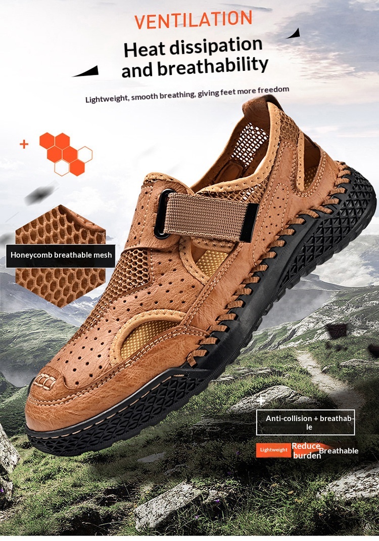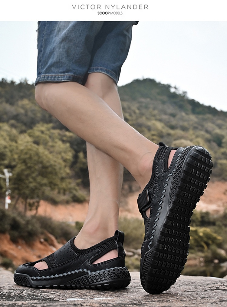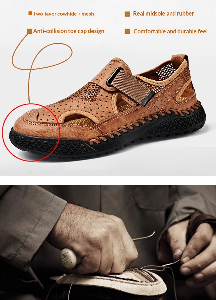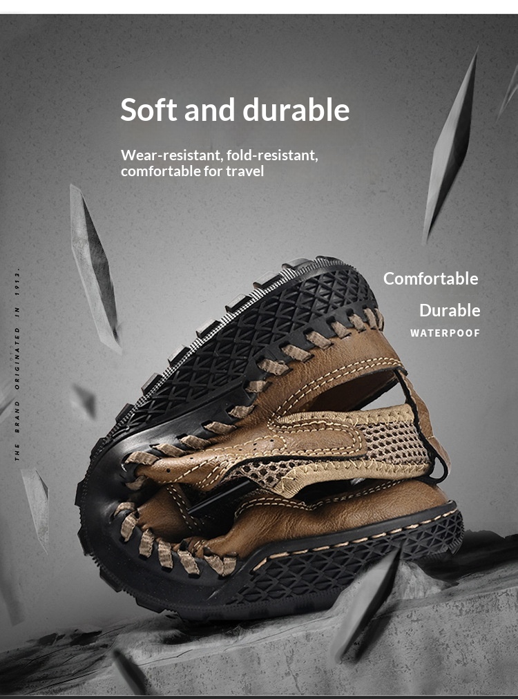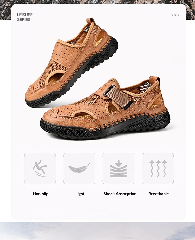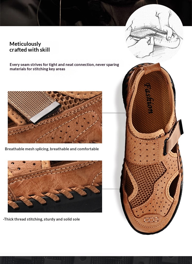 Product information:Upper Material: Genuine Leather + Mesh Closure: Velcro Strap Sizes: 38, 39, 40, 41, 42, 43, 44, 45, 46 Gender: Men’s Outsole Material: Rubber Age Group: Young Adults (18–40 years)...