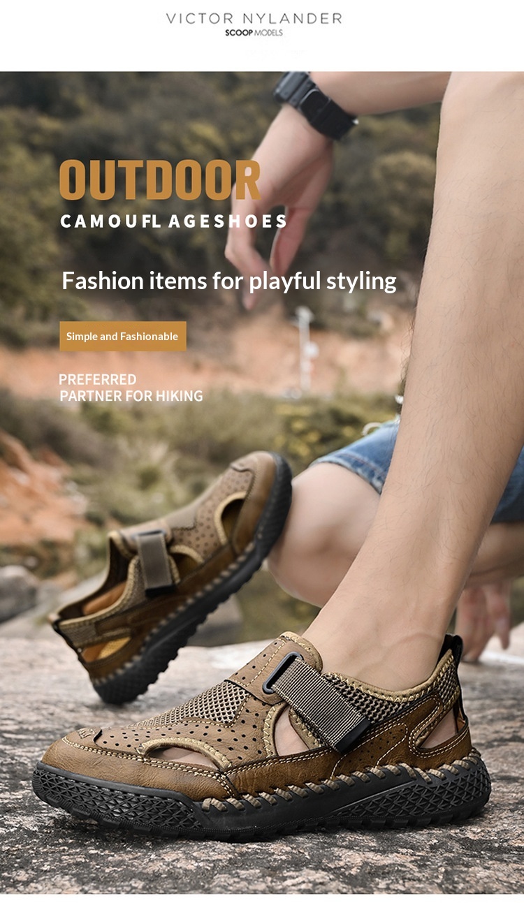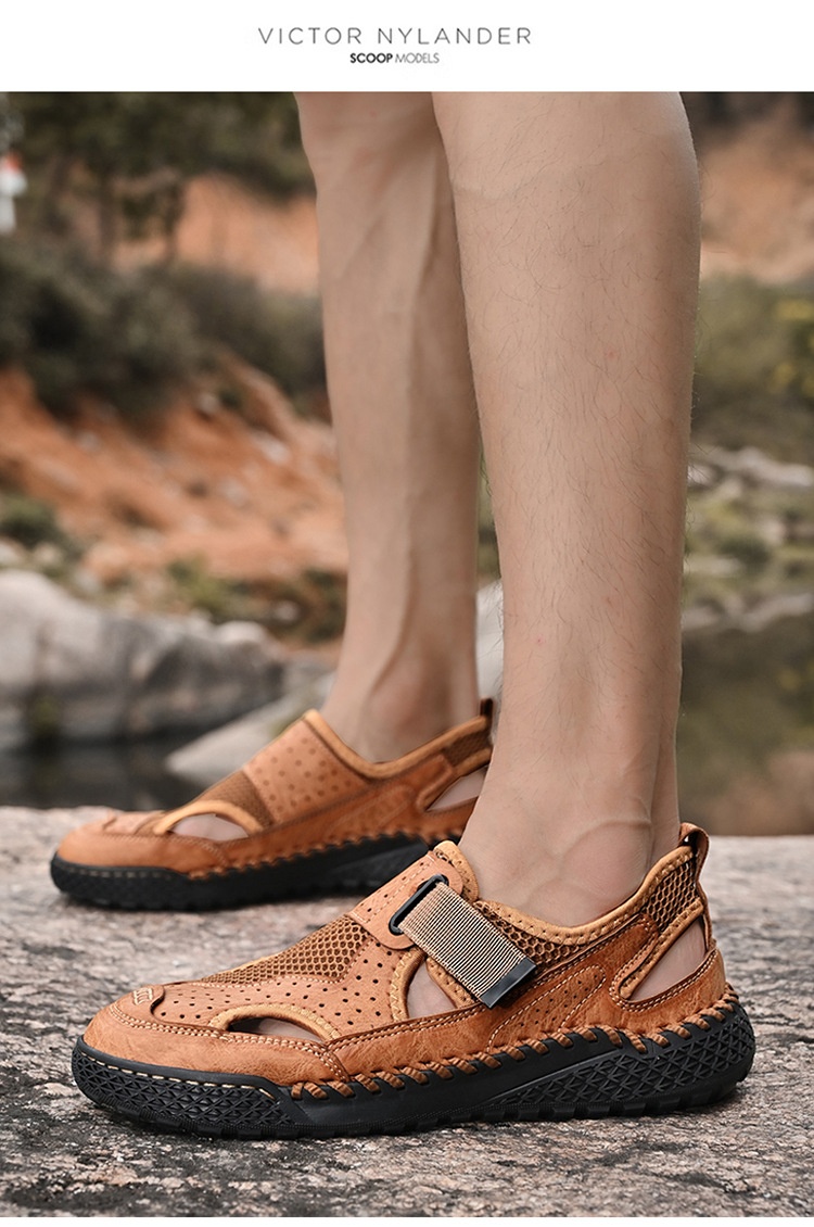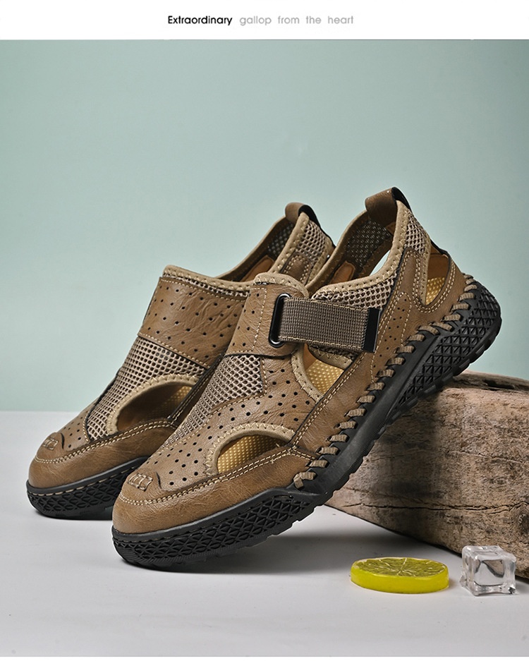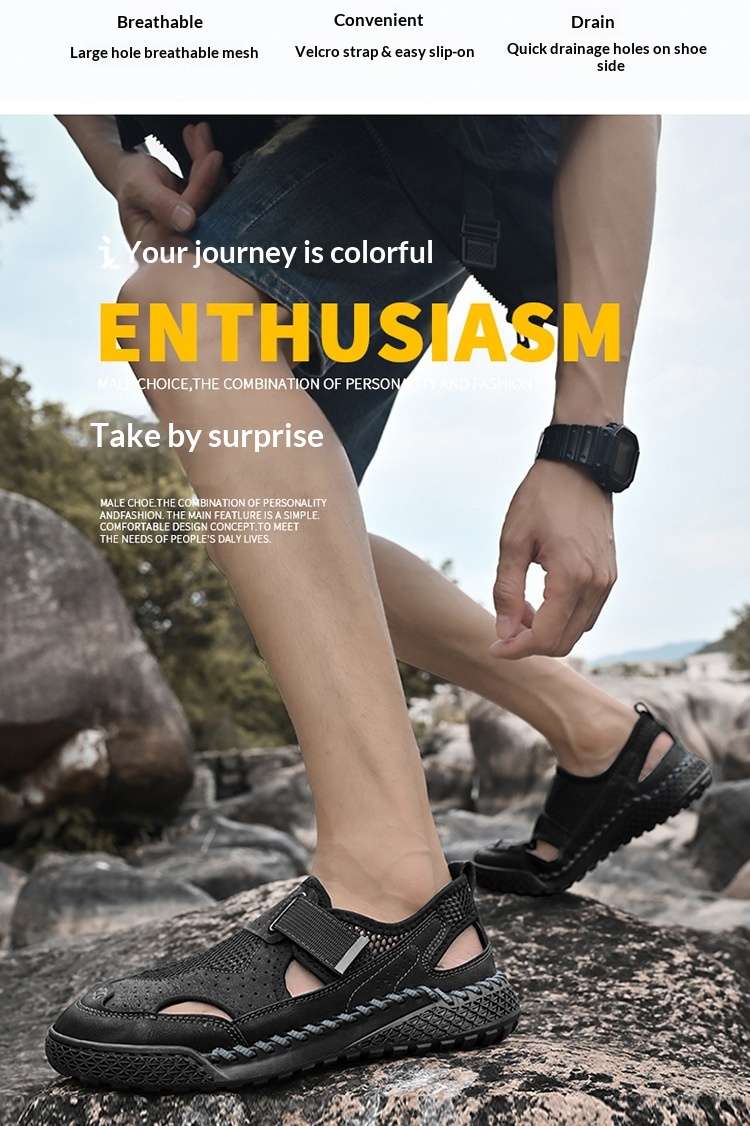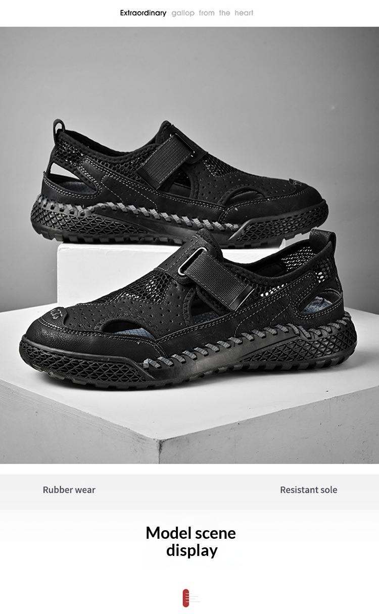 Product information:Upper Material: Genuine Leather + Mesh Closure: Velcro Strap Sizes: 38, 39, 40, 41, 42, 43, 44, 45, 46 Gender: Men’s Outsole Material: Rubber Age Group: Young Adults (18–40 years)...