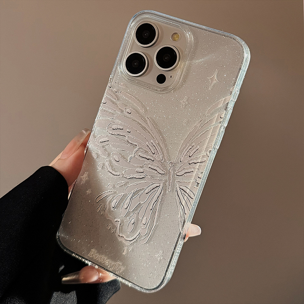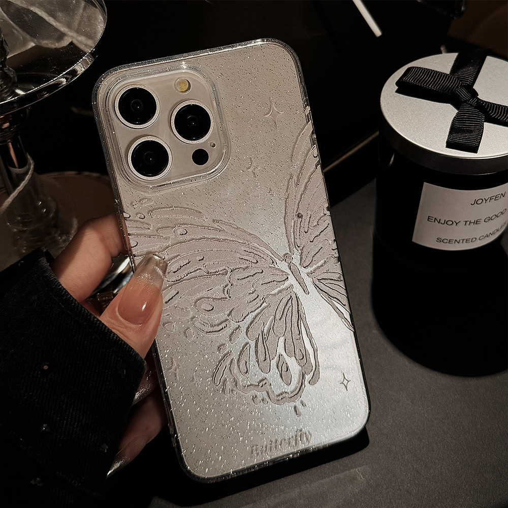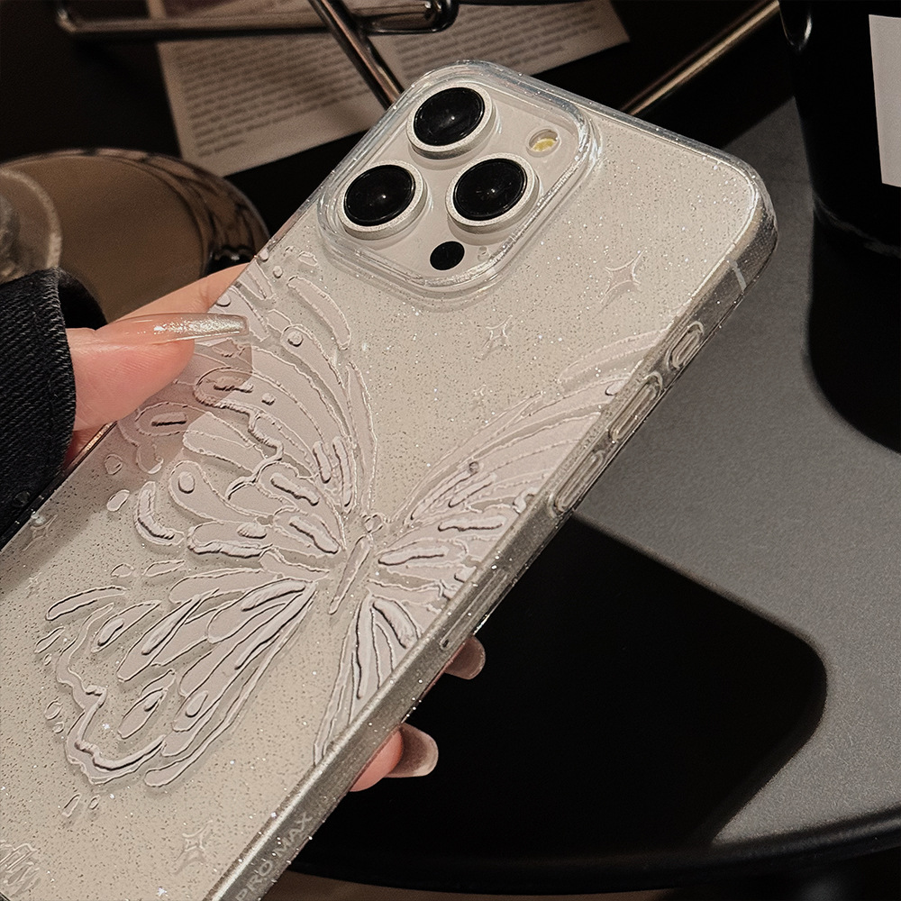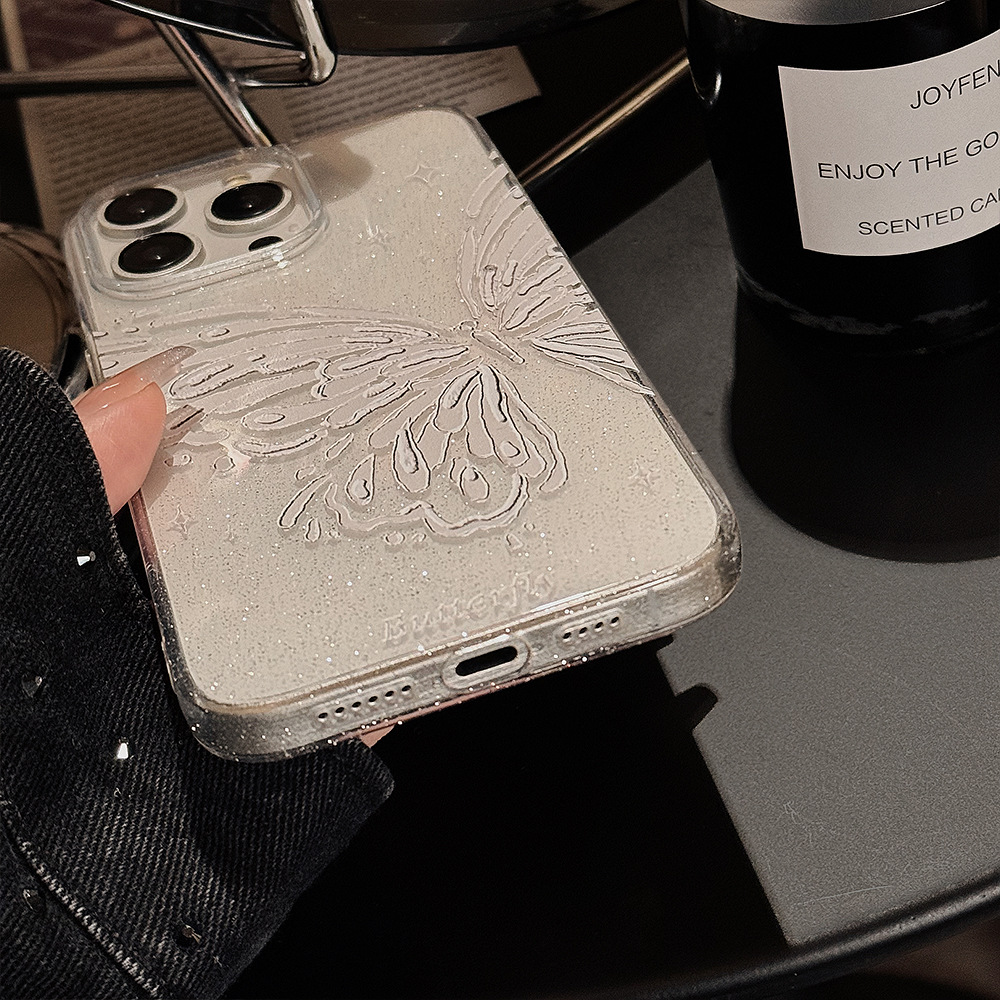 Butterfly-themed Phone Case With Dreamy Glitter Powder, Soft And Minimalist Style
