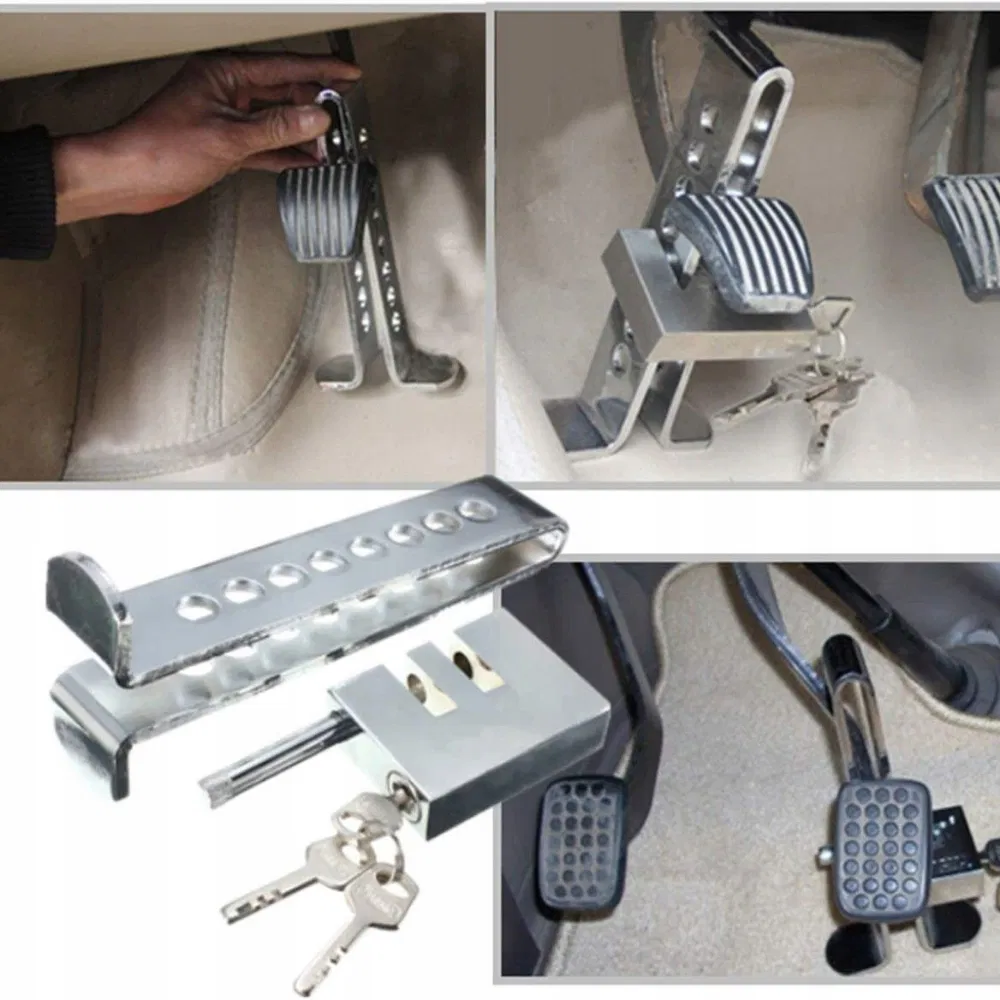 Product Name: Brake/Clutch Pedal LockProduct Introduction: The Brake/Clutch Pedal Lock is an effective anti-theft solution that prevents car theft. Made from durable alloy steel, it is reliable and easy to install. Thanks to its unique structure, it is difficult for thieves to bypass, providing effective protection for your vehicle.