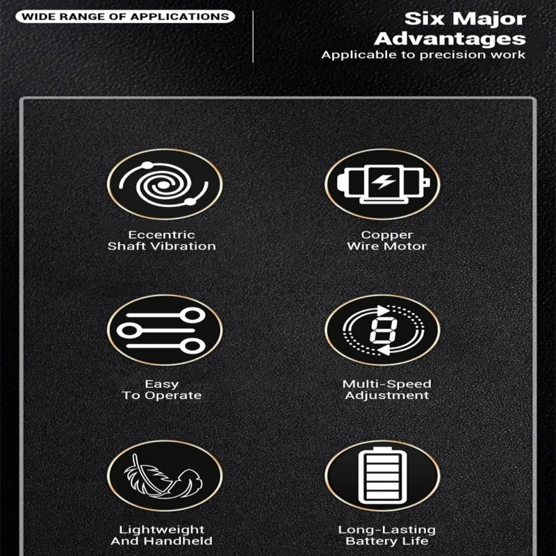 8 adjustable speed gears, rotation speed of 2800-5500rpm, suitable for low-speed grinding, medium-speed grinding, and high-speed polishing. You can easily adjust according to your needs.