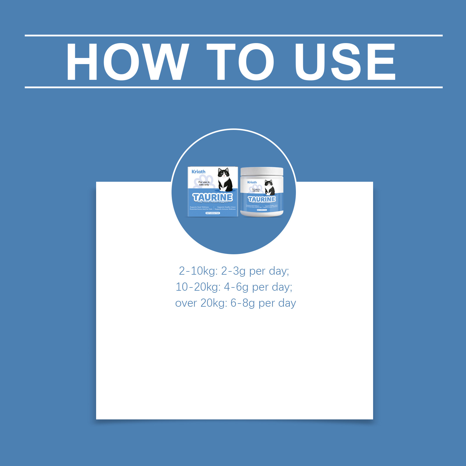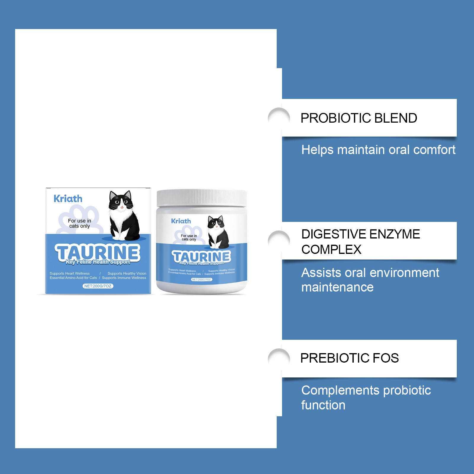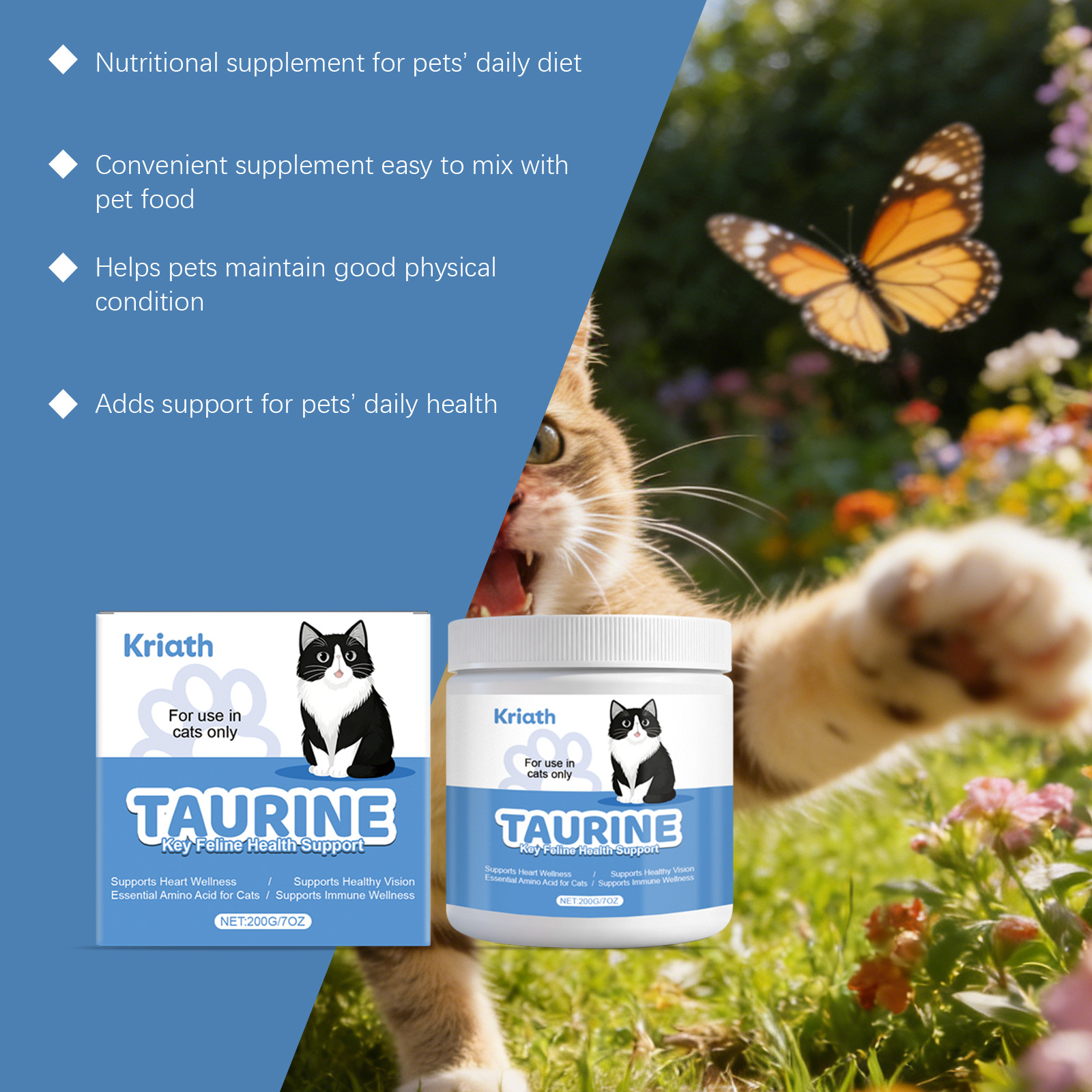 Ingredients: taurine, complex vitamins and trace elements, DHA, chicken liver powder.