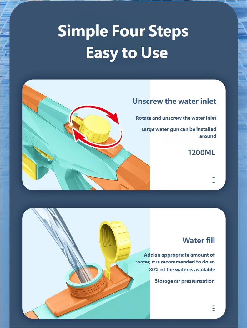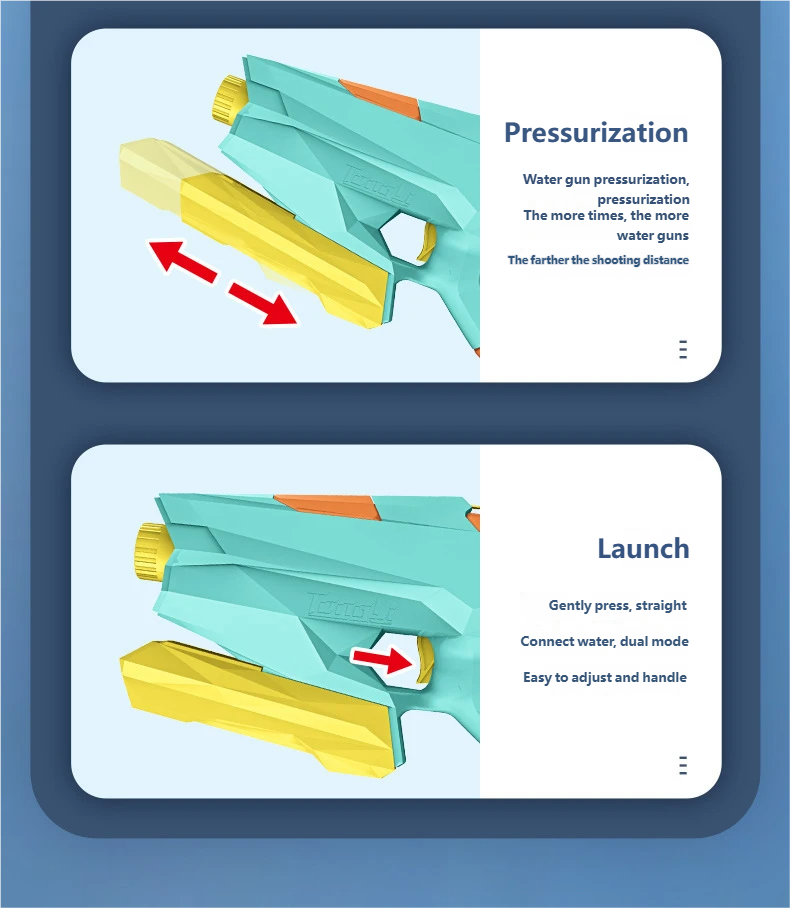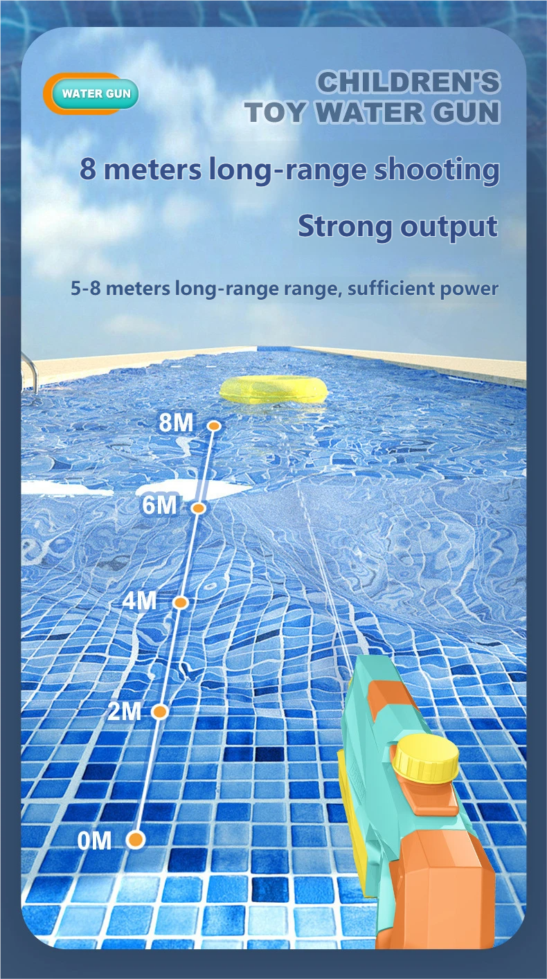 8-Meter Long Range & High Pressure: Featuring a high-pressure pull-back mechanism, this water gun delivers powerful shots with a long range of 5-8 meters (depending on the model), providing an exciting and refreshing water battle experience for kids.