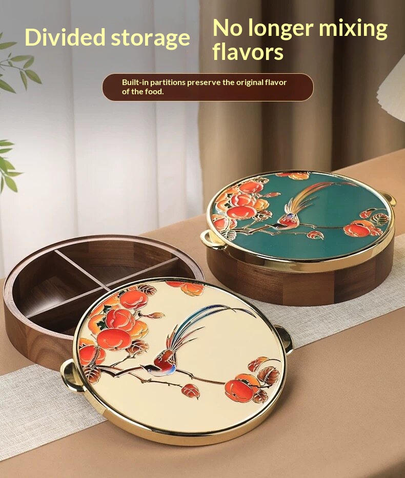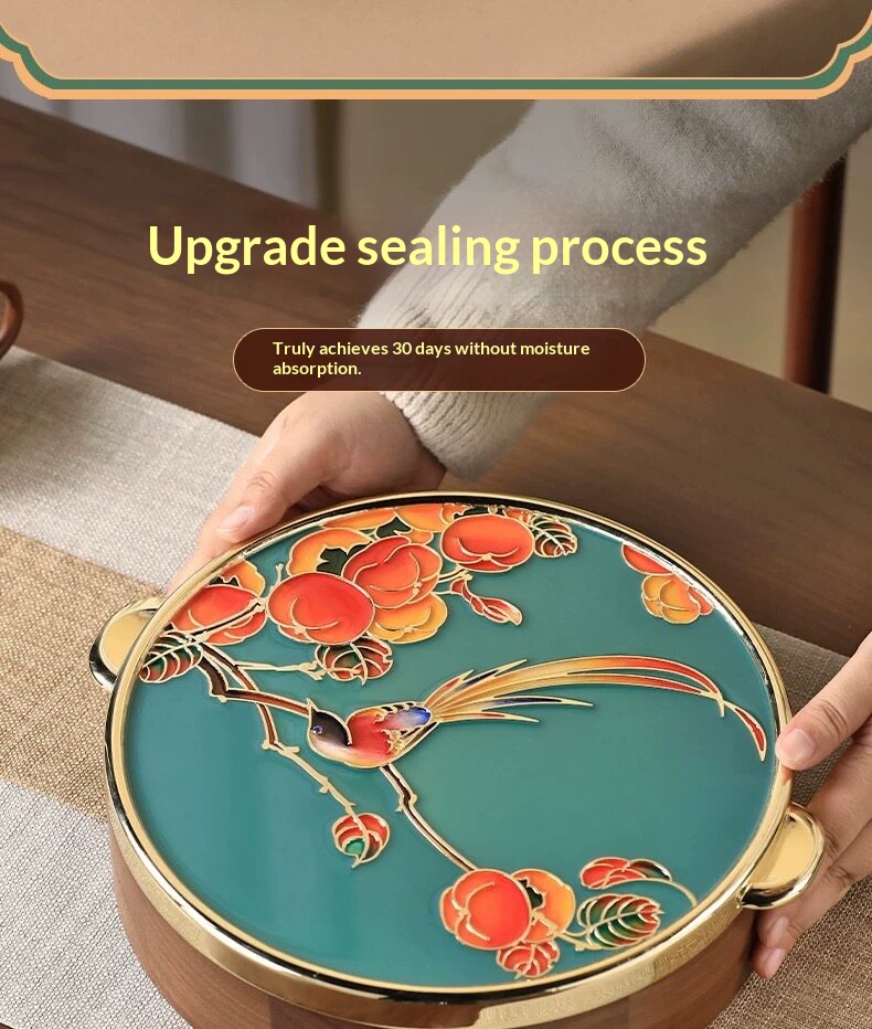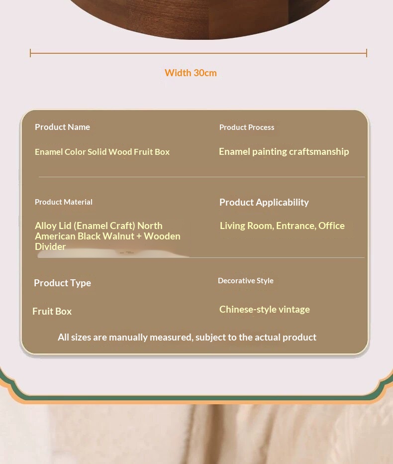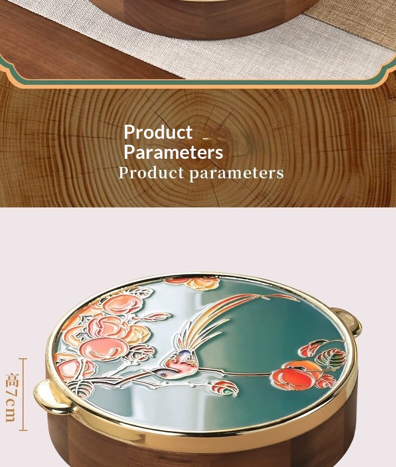 Product information:Type: Nut box Material: Wood Colors: “Joy on the Branches” [Emerald Blue]; “Joy on the Branches” [Pearl White] Dimensions: 26 cm in diameter, 7 cm in height; 30 cm including the ha...