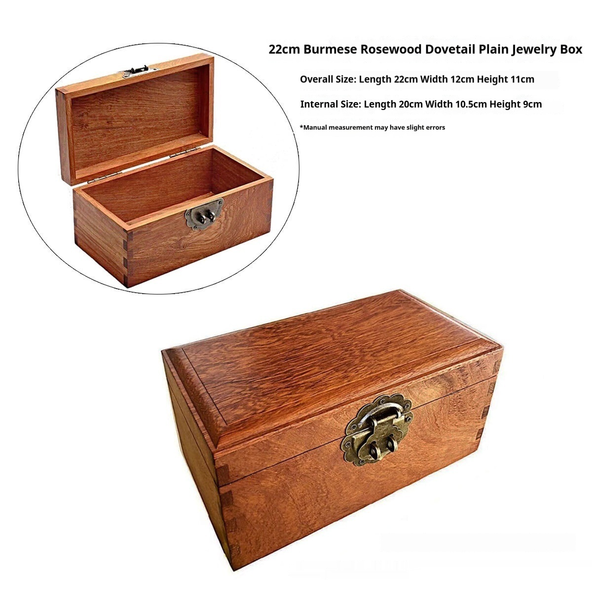 Style 11: 27cm Burmese flower plain jewelry box, no lining, no lock