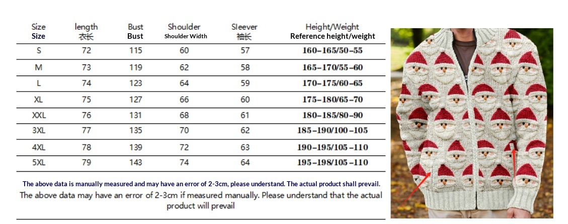 Christmas 3D-printed Chunky-knit Fabric Zip-up Sweater