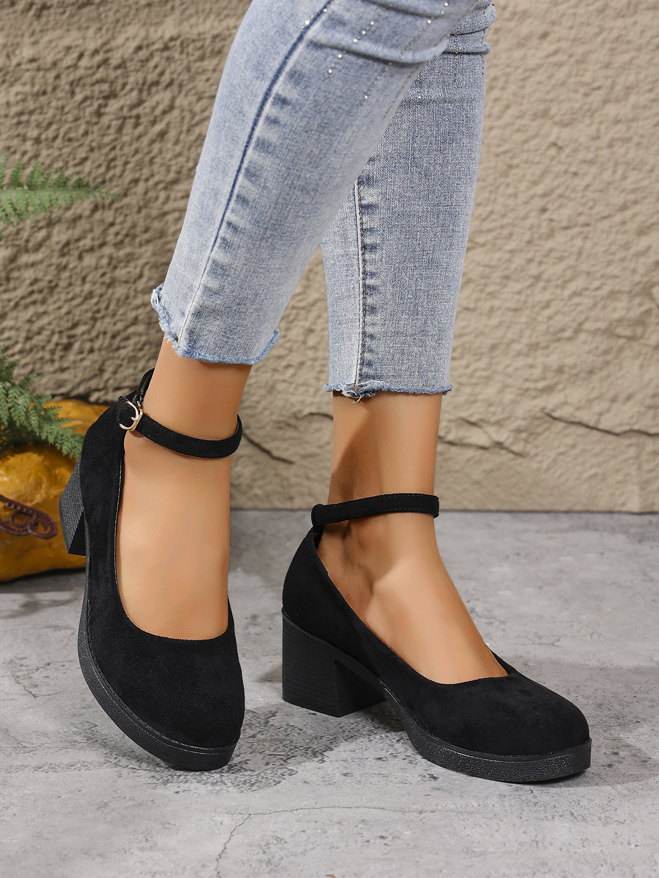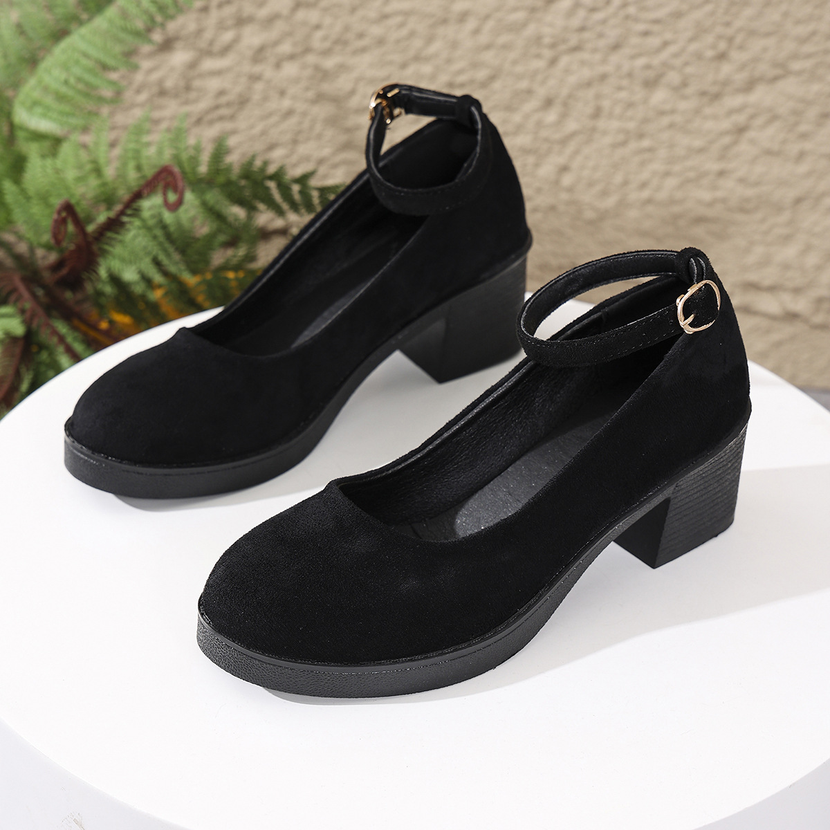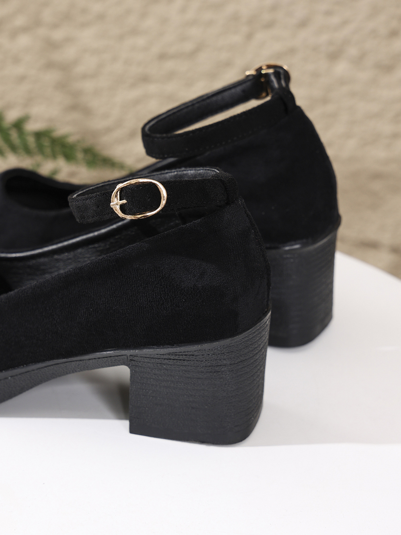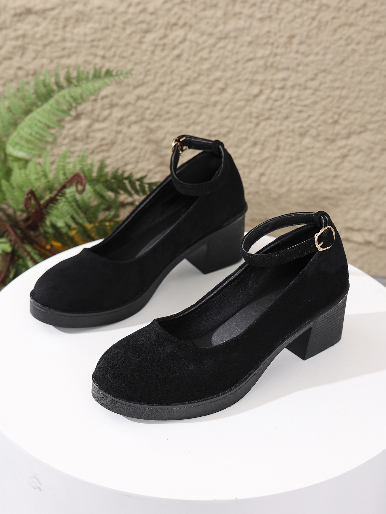 Chunky Heeled Suede Mary Jane Womens Shoes