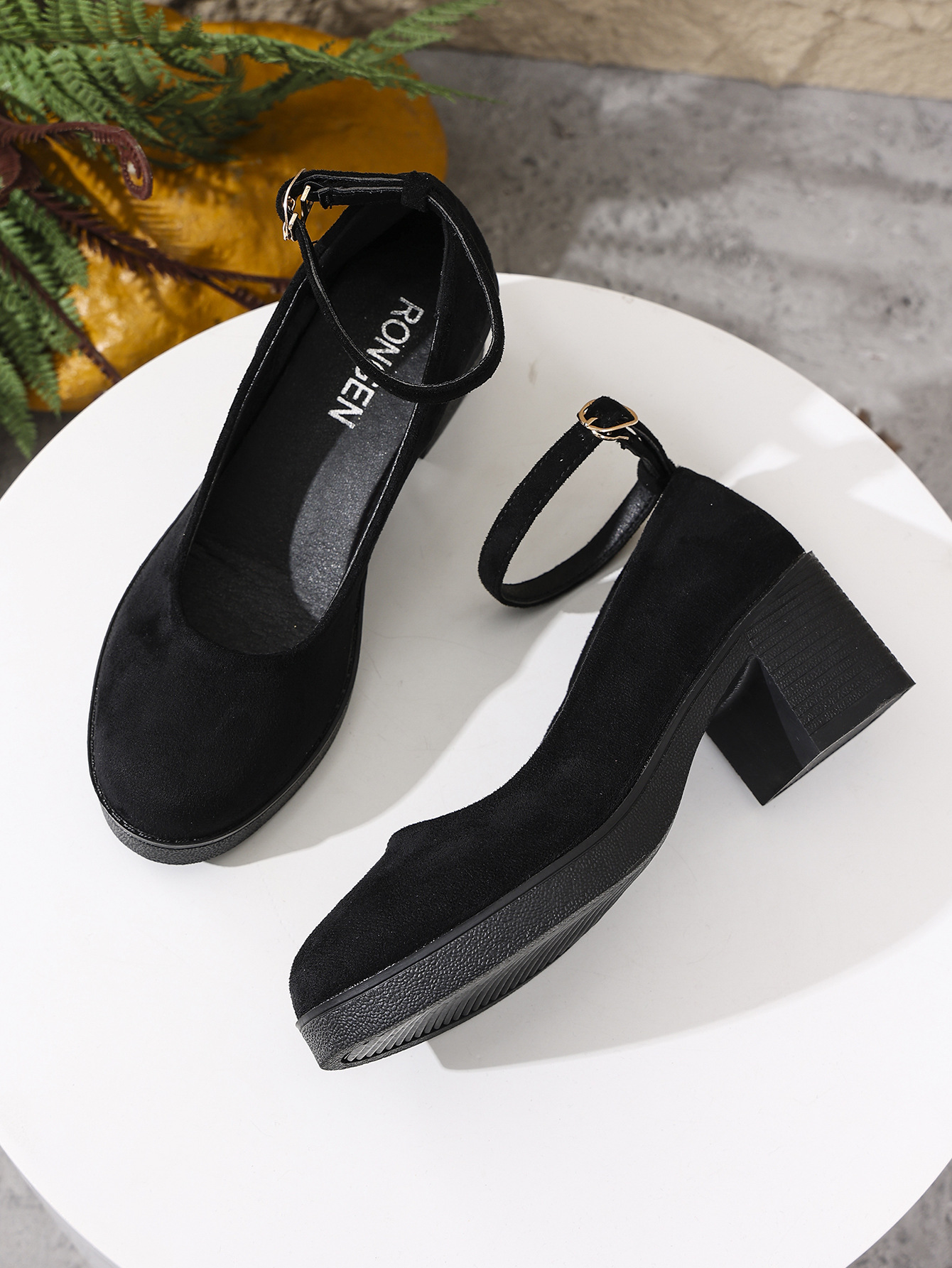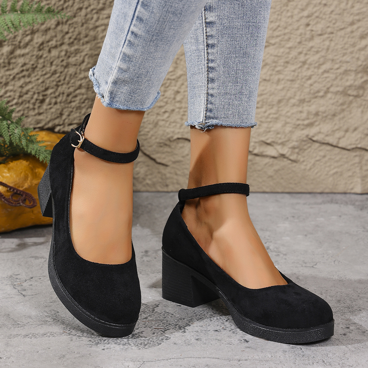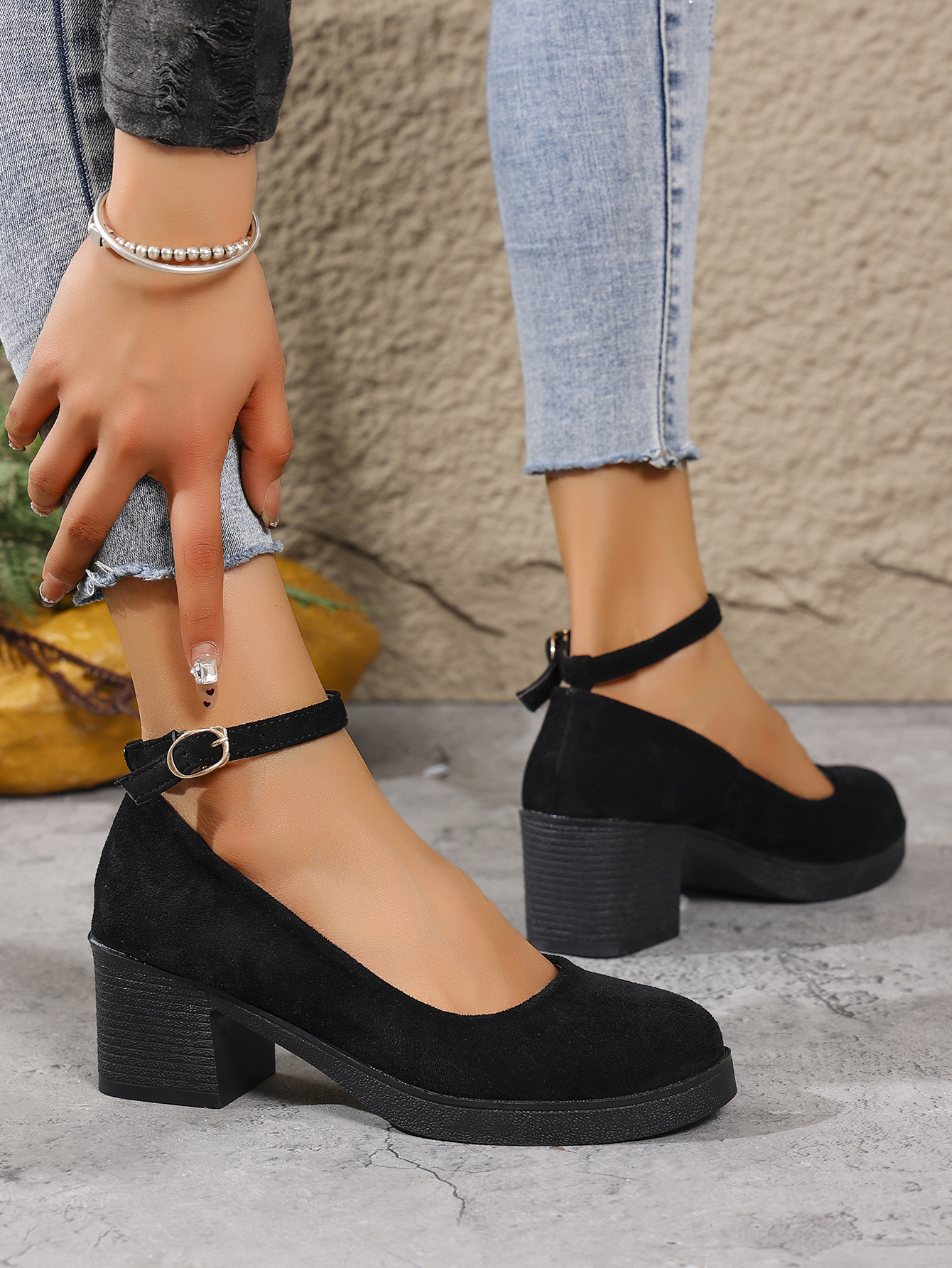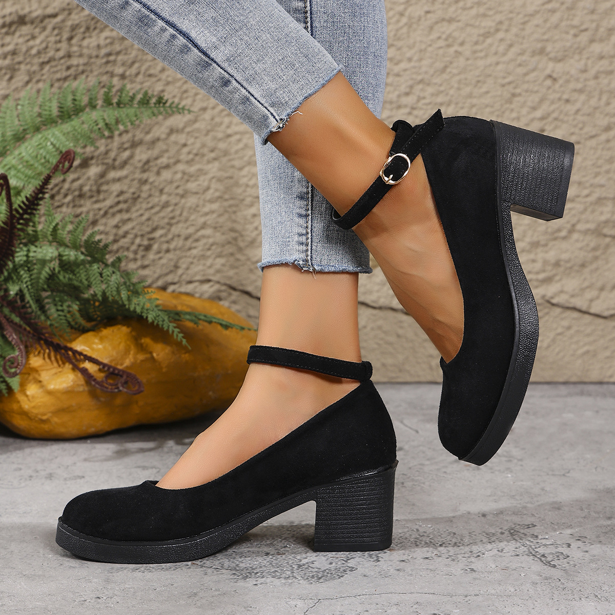 Chunky Heeled Suede Mary Jane Womens Shoes
