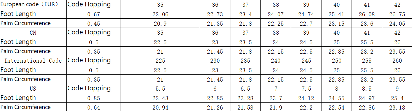 Sizes: 36, 37, 38, 39, 40, 41, 42