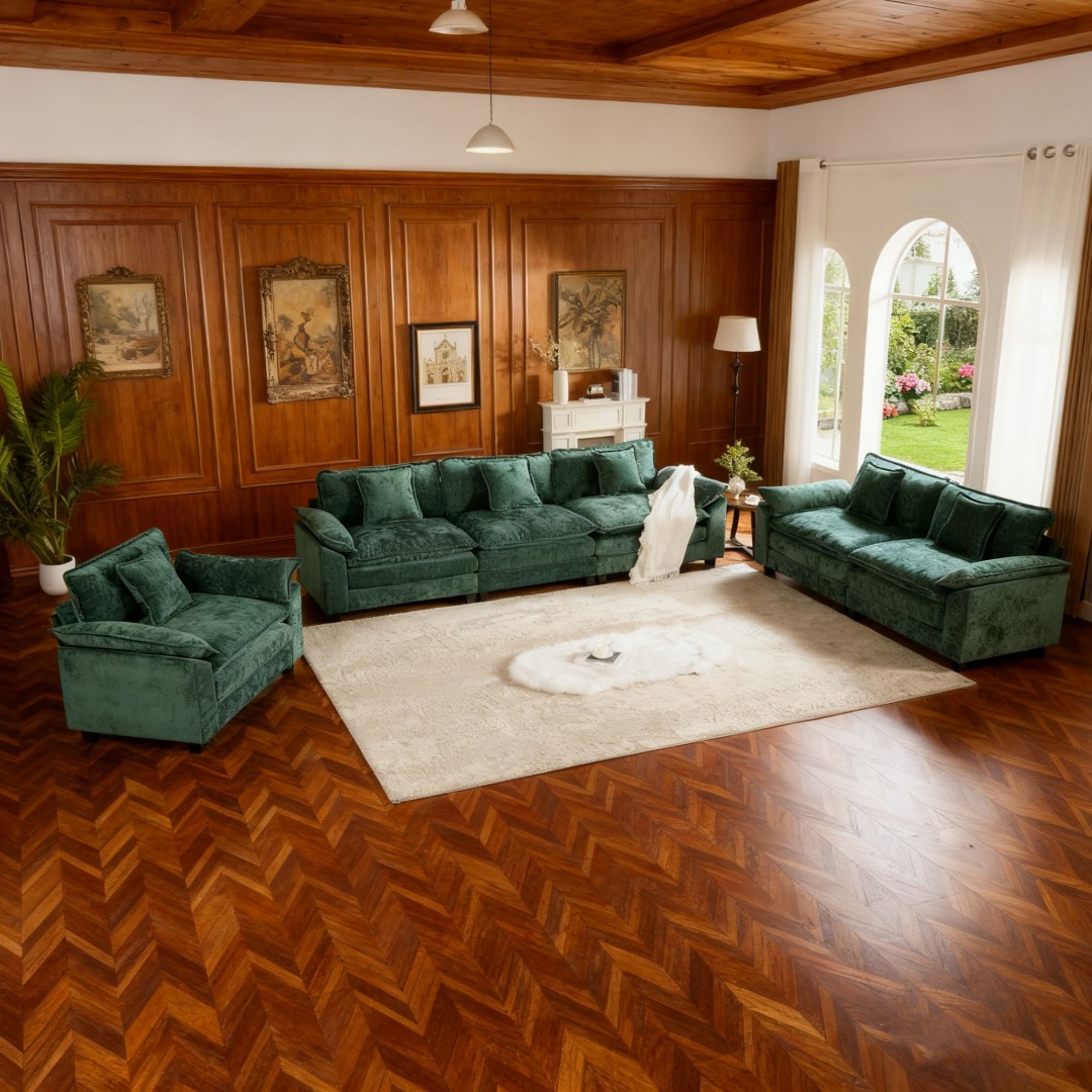 Product Name:Cloud Sofa Single Seat (Ottoman is not included), Modern Sectional Couch, for Living Room Bedroom and Apartment, Comfy Double Layer Upholstered Seat Cushion, Breathable Chenille Fabric, Green,SW5041GN