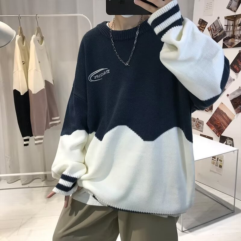 Color Blocked Autumnwinter Crewneck Sweater For Men