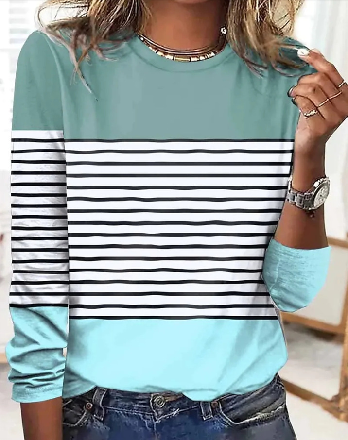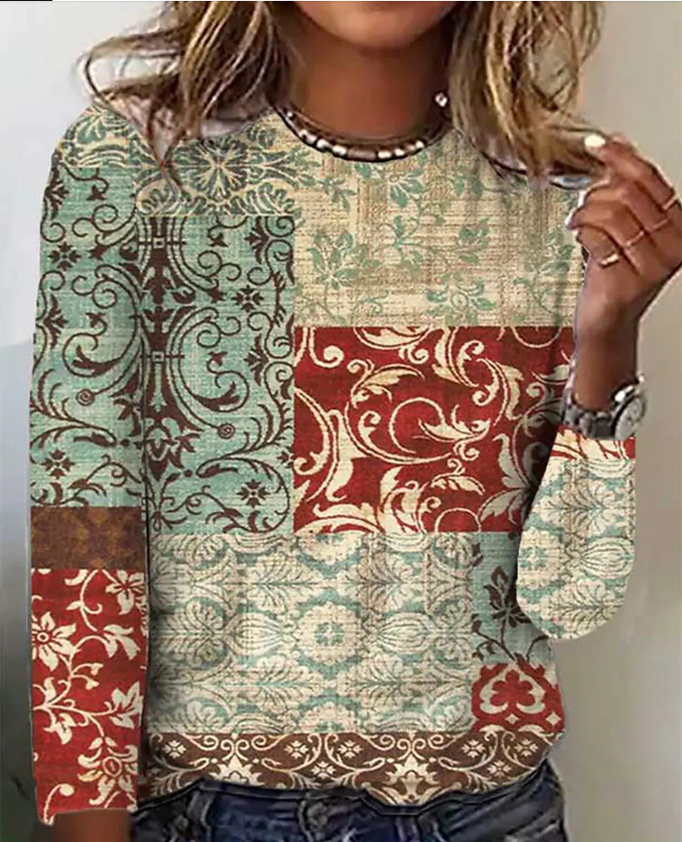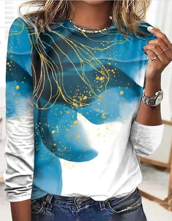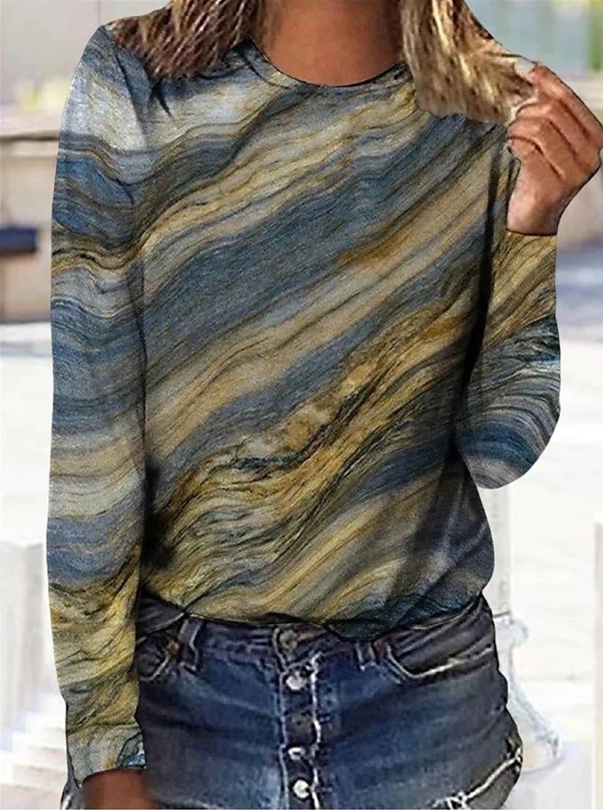 Comfortable Casual And Relaxed-fit With A 3D Print Cozy Sporty Long-sleeve Crew-neck T-shirt