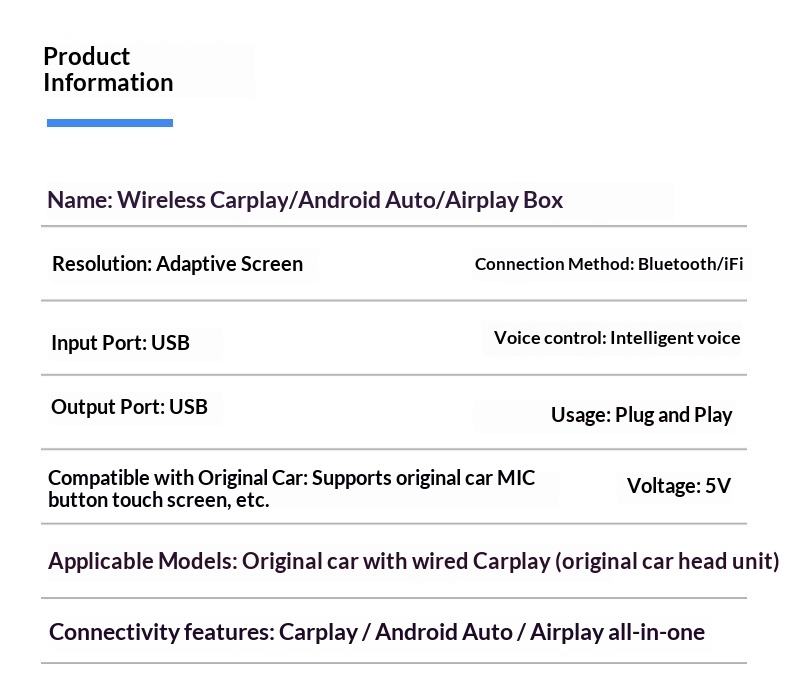 Product information:Resolution: Original vehicle resolutionScreen Size: No screenSpecifications:A: Q1AS Silver White Mark Metal + Glass Apple Mirror Projection Android Auto Three-in-One CarPlay Box -...