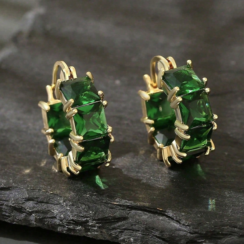 Copper Inlaid Zircon Geometric Round Hoop Earrings Vintage And Elegant Emerald Earrings