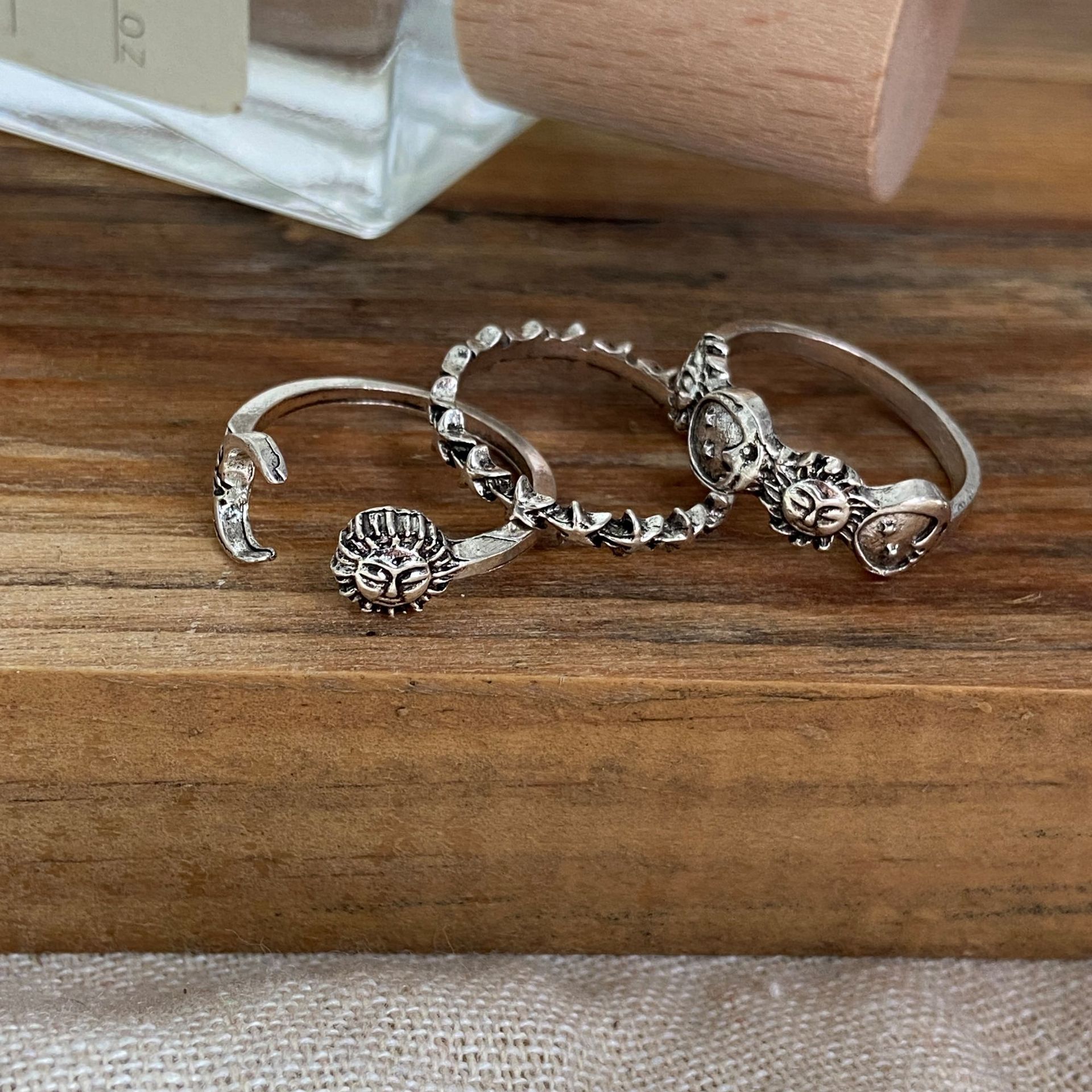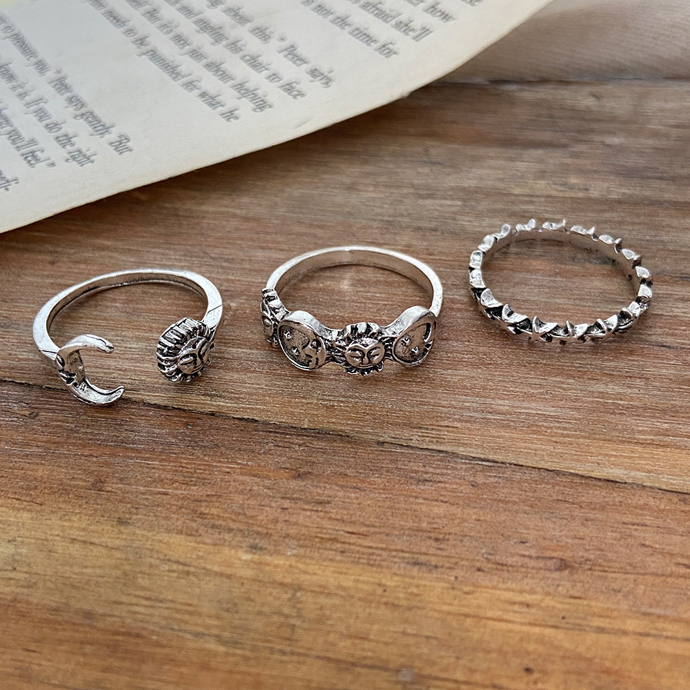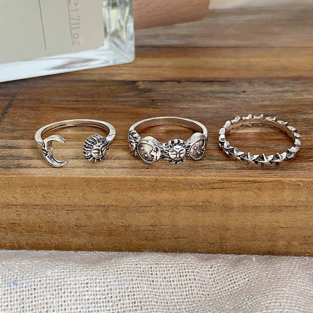 Creative Vintage Star And Moon 3-Piece Set Distressed Rings