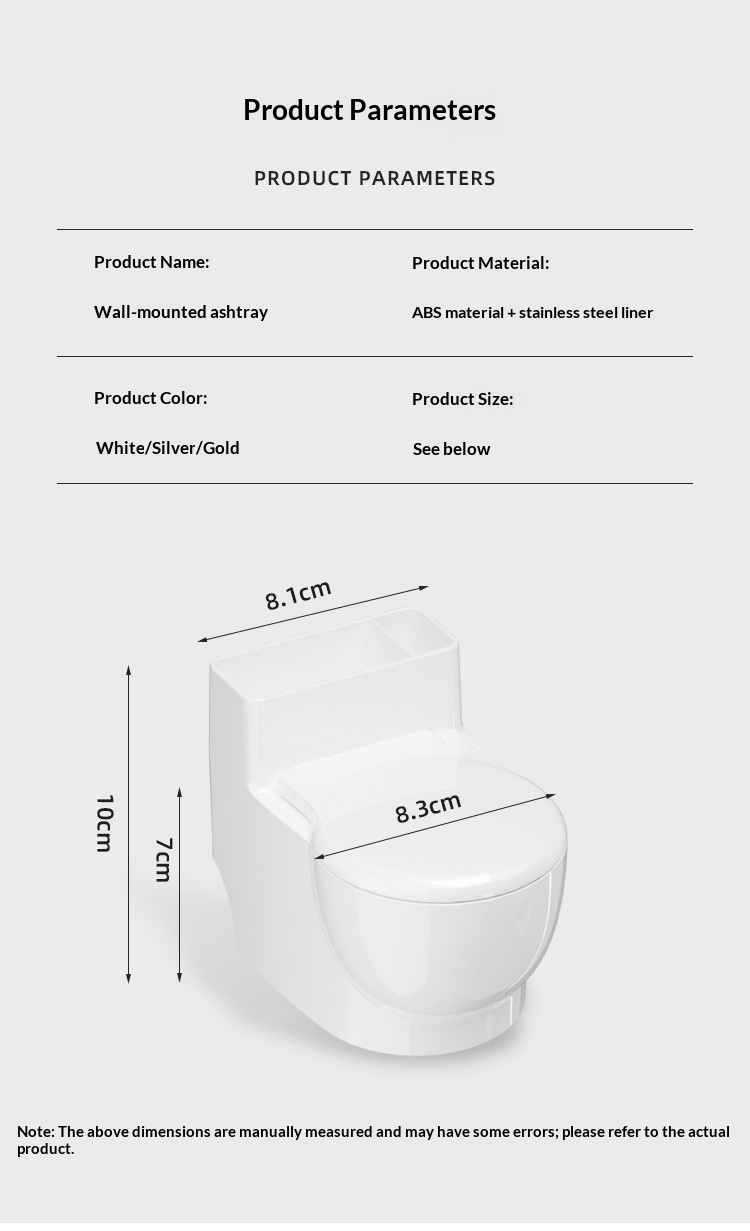 Product information:Colors: White Lid [Punch-Free Ashtray], Silver Lid [Punch-Free Ashtray], Gold Lid [Punch-Free Ashtray] Material: ABS + Stainless Steel Additional Feature: Storage Style: Chinese, M...