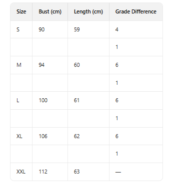 Sizes: S, M, L, XL, XXL