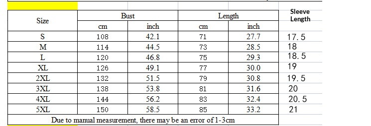 Sizes: S, M, L, XL, 2XL, 3XL, 4XL, 5XL