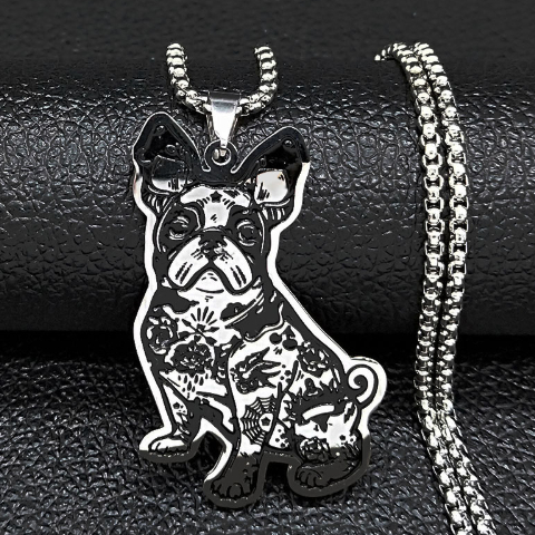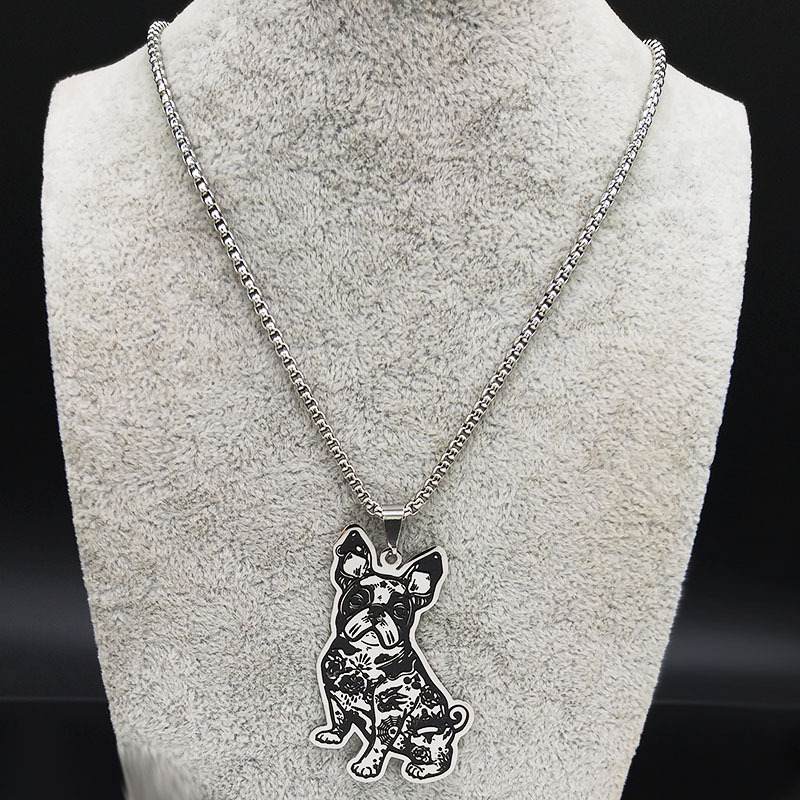Cute French Bulldog Pendant Necklace In Black-Oiled Stainless Steel Pet Jewelry For Women And Men