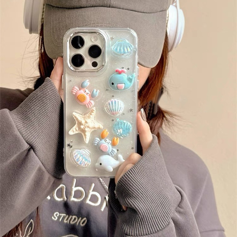 Product information:Color: Electroplated Frame — Meteor Glitter Powder — Crab Shell Pattern Compatible Models: Apple Function: Anti-Slip Material: TPU Color Options: Blue, Transparent Trendy Element:...