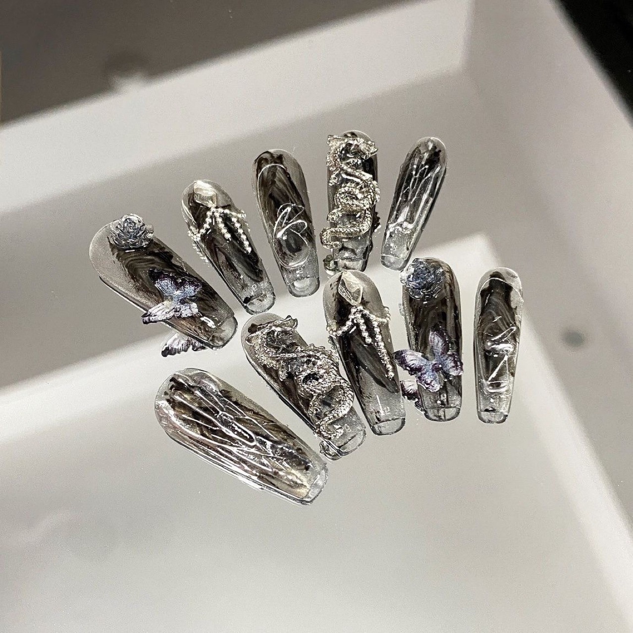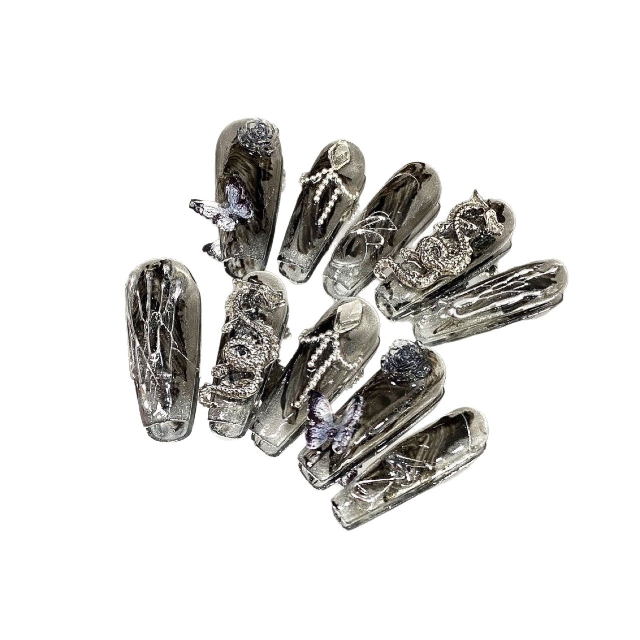 Mysterious Black-themed New Chinese-style Icy-cool Rhinestone Nail Tips For Wear