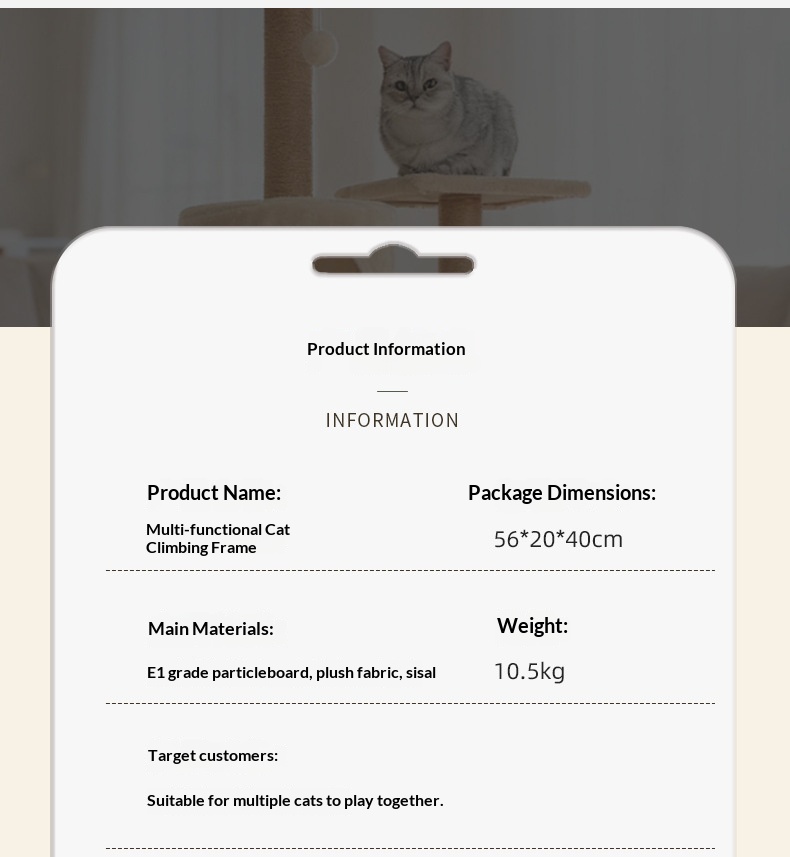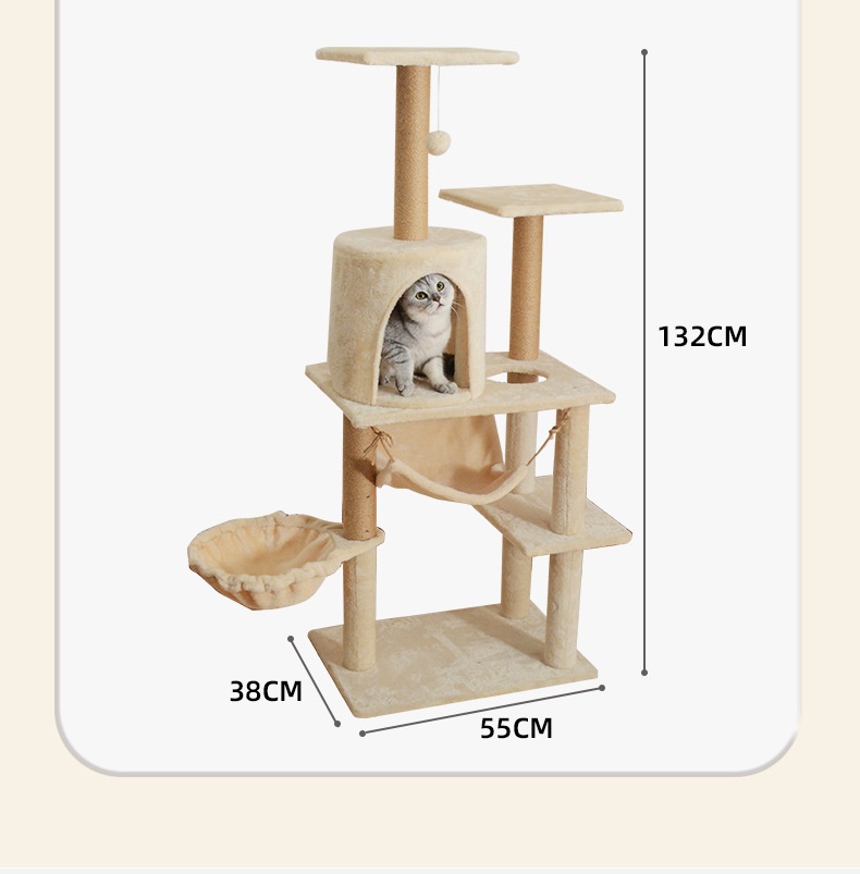 Product information:Color: Light gray, dark gray, beige Material: Wood Dimensions: 55*38*132 cm Style: Minimalis Packing list: Cat tree x1pc Product Image: