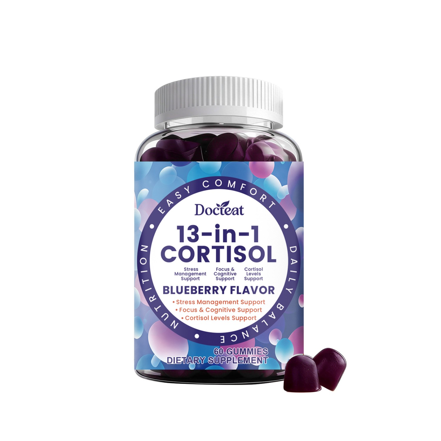 Ingredients: vitamin B6, vitamin B12, magnesium, withania somnifera extract, Hericium erinaceus extract, paramita extract, theanine, GABA, basil extract, rhodiola extract, magnolia bark extract, ginseng root extract, phosphatidylserine, blueberry extract.