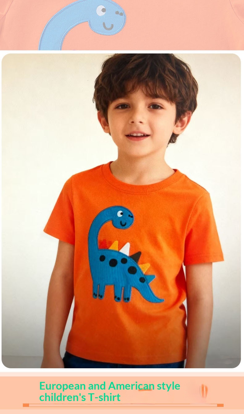 Dinosaur Embroidery Pattern T-Shirt Knitted Top