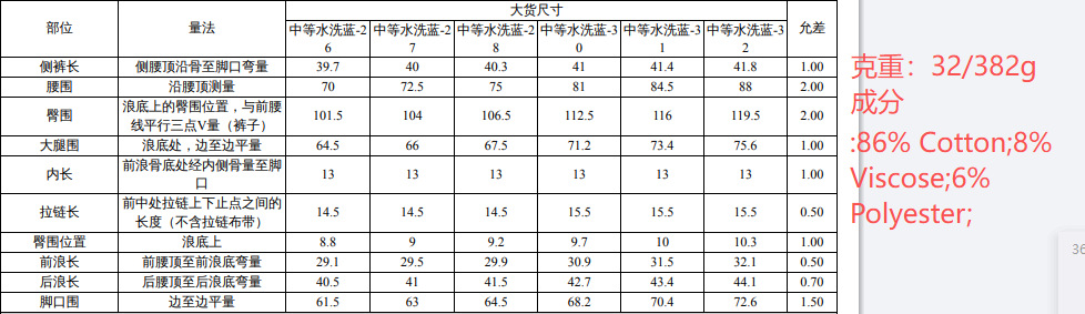 Sizes: 26, 27, 28, 30, 32