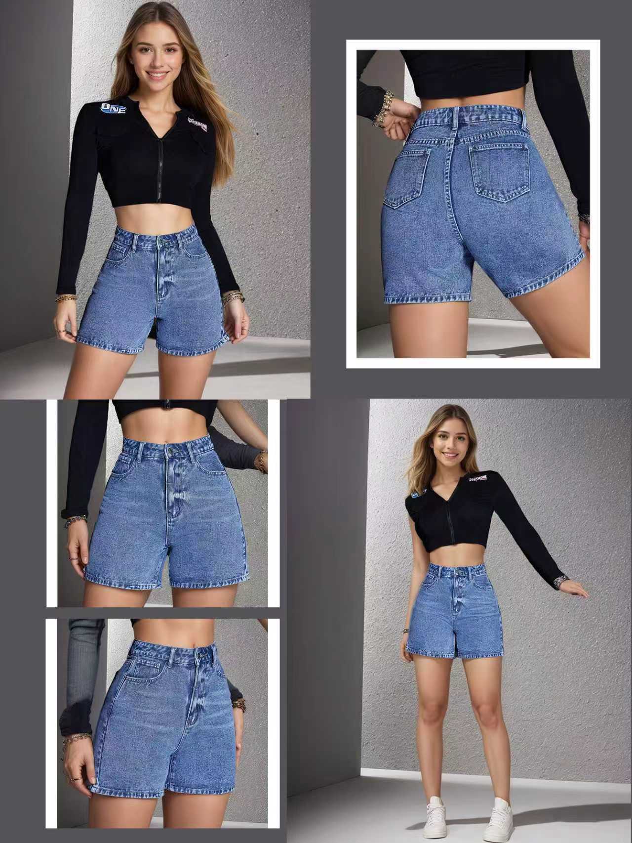 Product information:Color: BluePant length: Five-inch pantsWaist type: Mid-waistSizes: 26, 27, 28, 30, 32Inner fabric composition: CottonInner fabric composition content: 71%-80%Thickness: RegularMain...