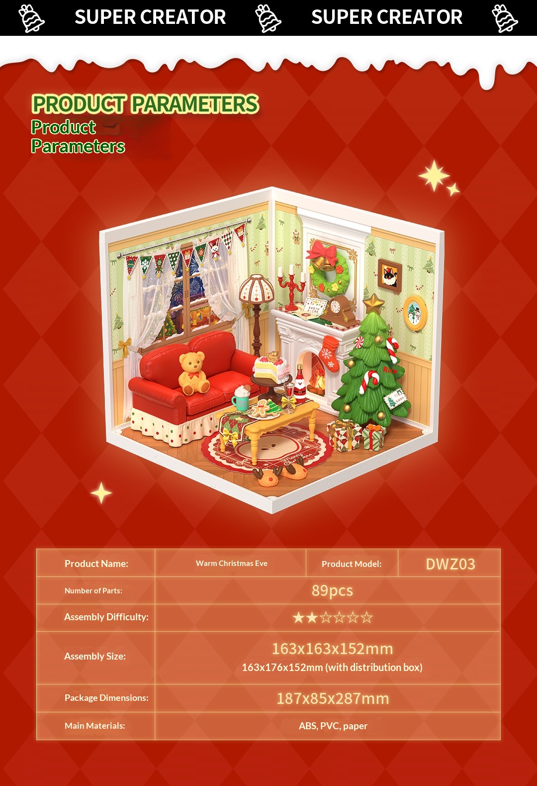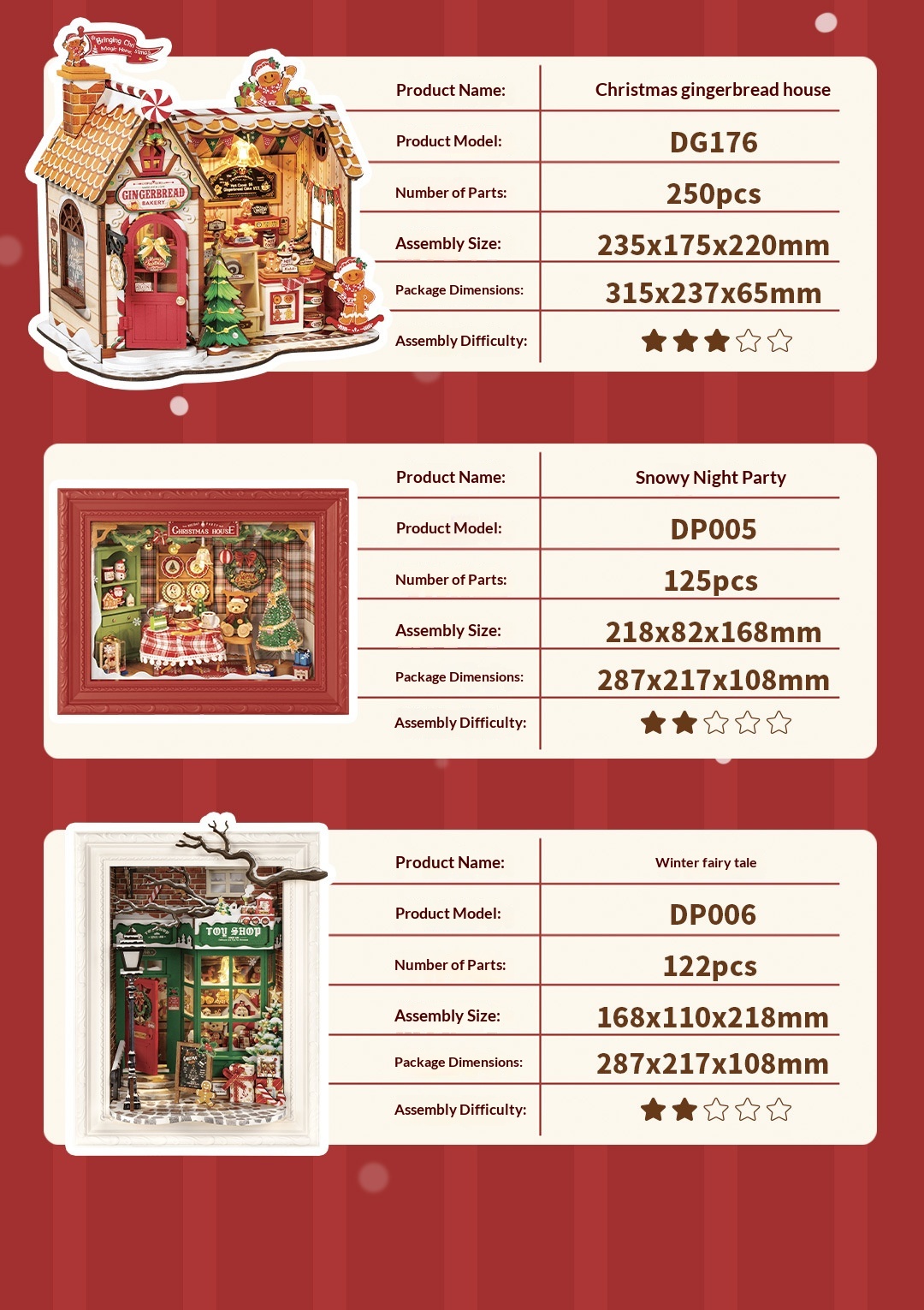Colors: DG176 Christmas Gingerbread House, DS043 Christmas Candy Stall, DP005 Snowy Night Party, DP006 Winter Fairy Tale, DWZ03 Cozy Christmas Eve, TGL04 Christmas Wreath, AMS01 Christmas Round-the-World Journey, DS036 Joyful Christmas House, DS041 Christmas Gift House, DS042 Rich Cocoa, MCD06 Skiing Santa Claus, MCD05 Sleigh Santa Claus