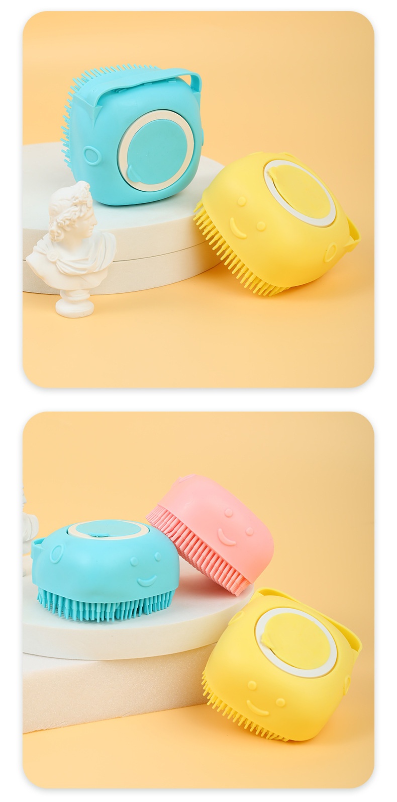 Product information:Specifications: Blue (8.5*8*8.5), Pink (8.5*8*8.5), Khaki (8.5*8*8.5), Yellow (8.5*8*8.5) Material: TPE Suitable for: Dogs Packing list: Brush* 1 Product Image: