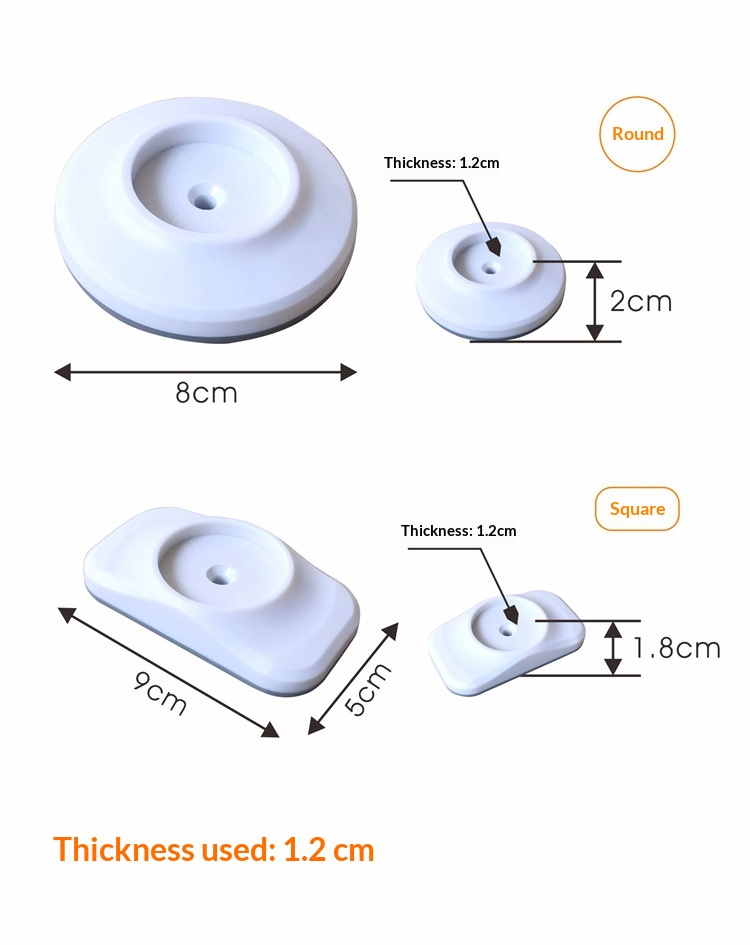 Specifications: Round (diameter 8 cm), Square (9 × 5 cm)