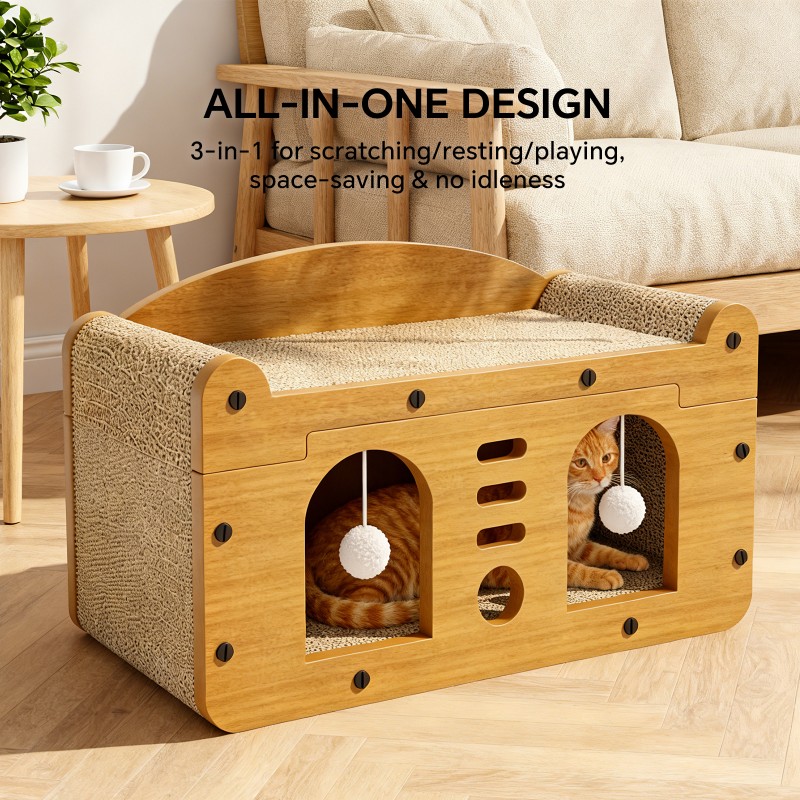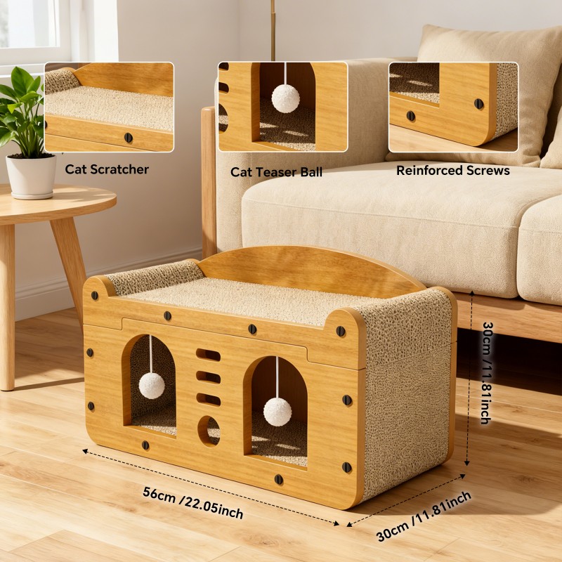 Double Door Design Cat Scratcher Sofa, 56cm Large Size, With 2 Teaser Balls, For Large & Multi-Cat Households
