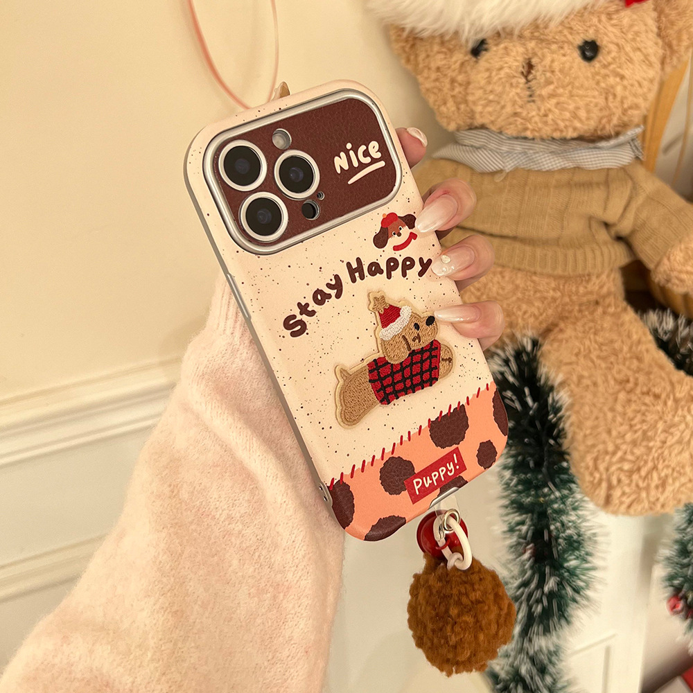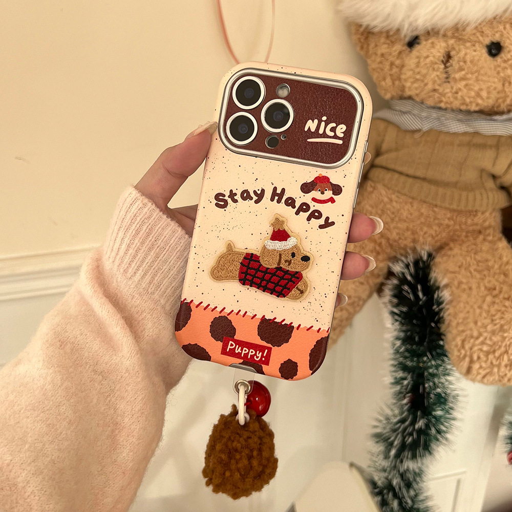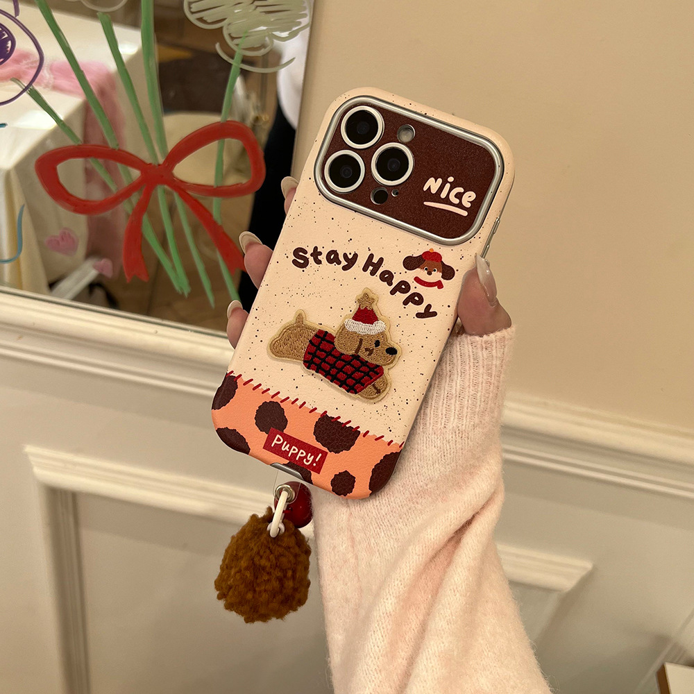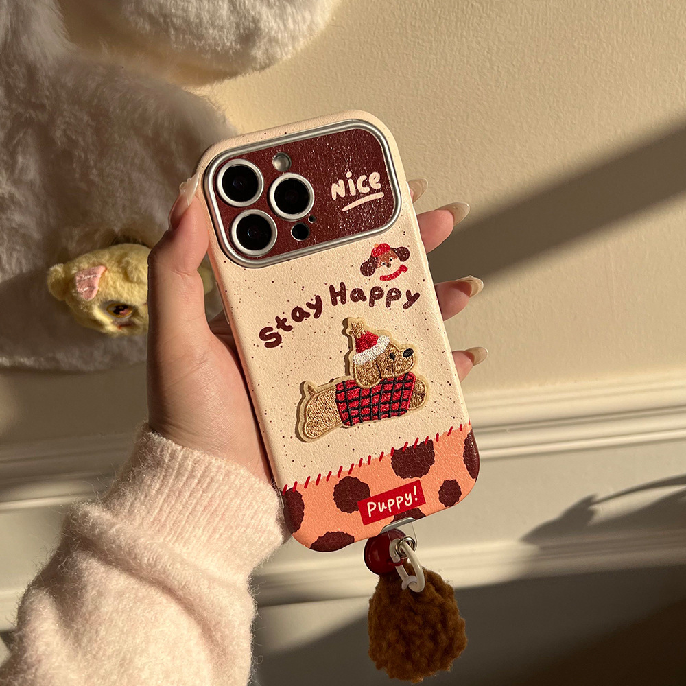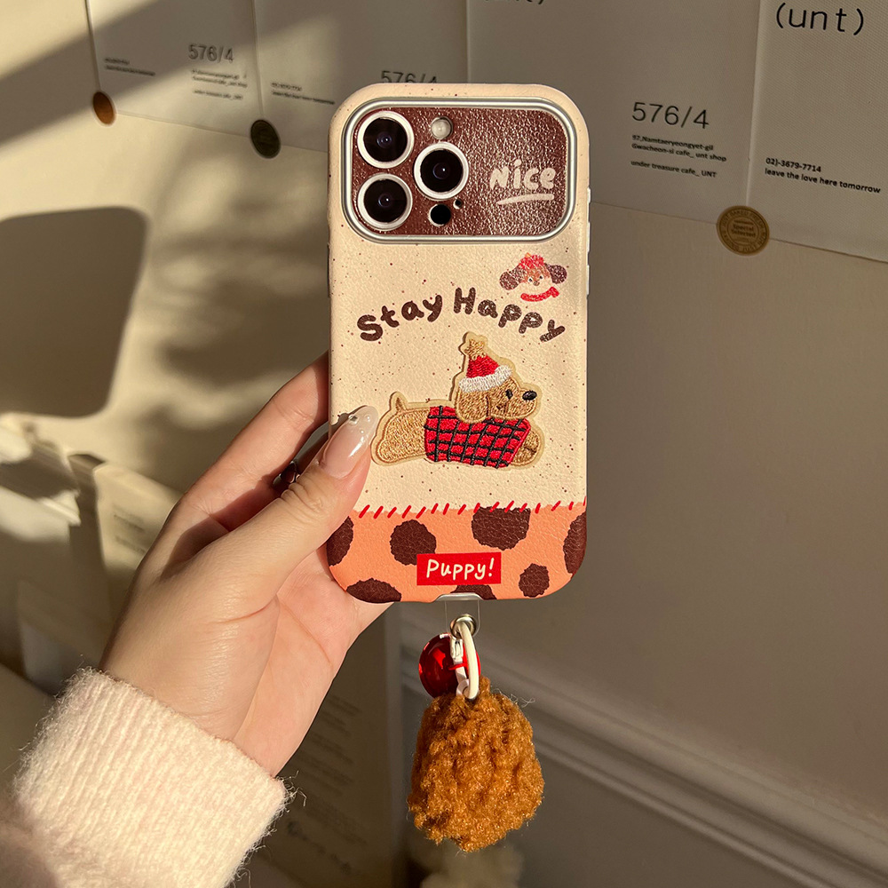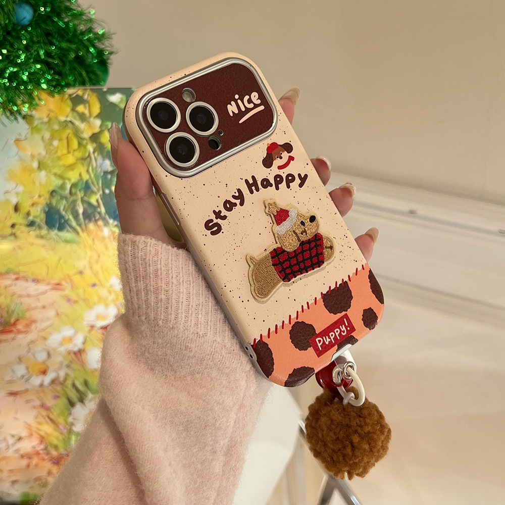Drop-proof Phone Case With Leather-texture Embroidery Of A Dog