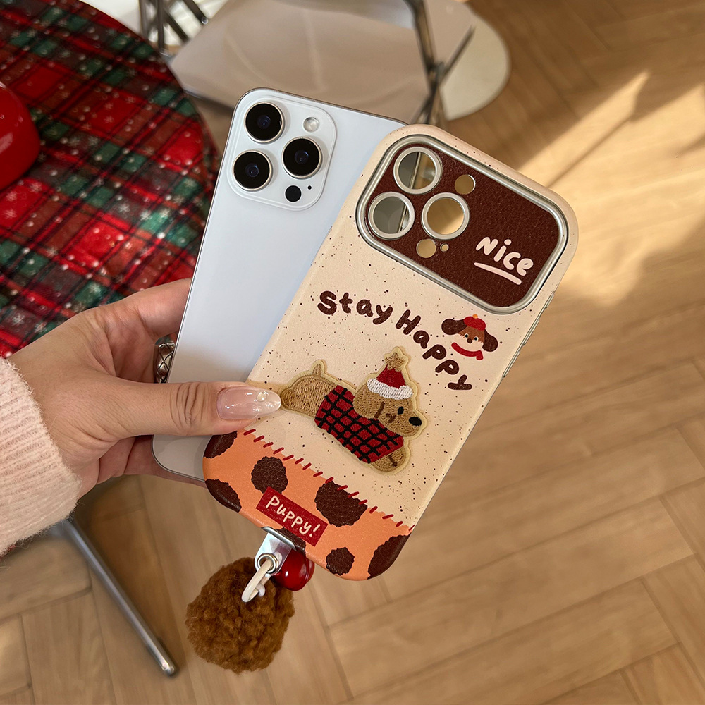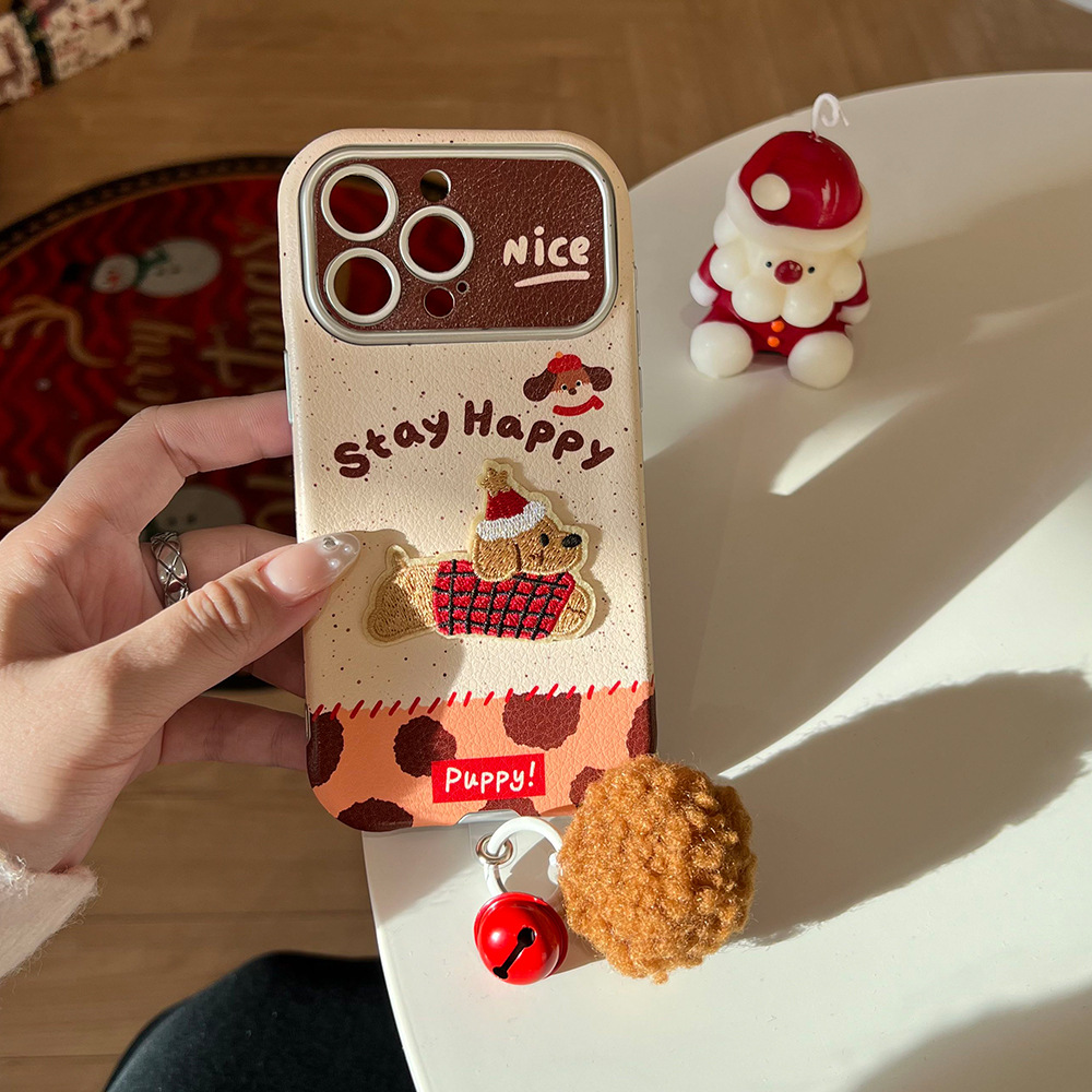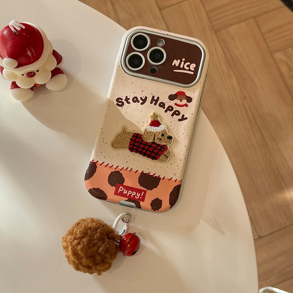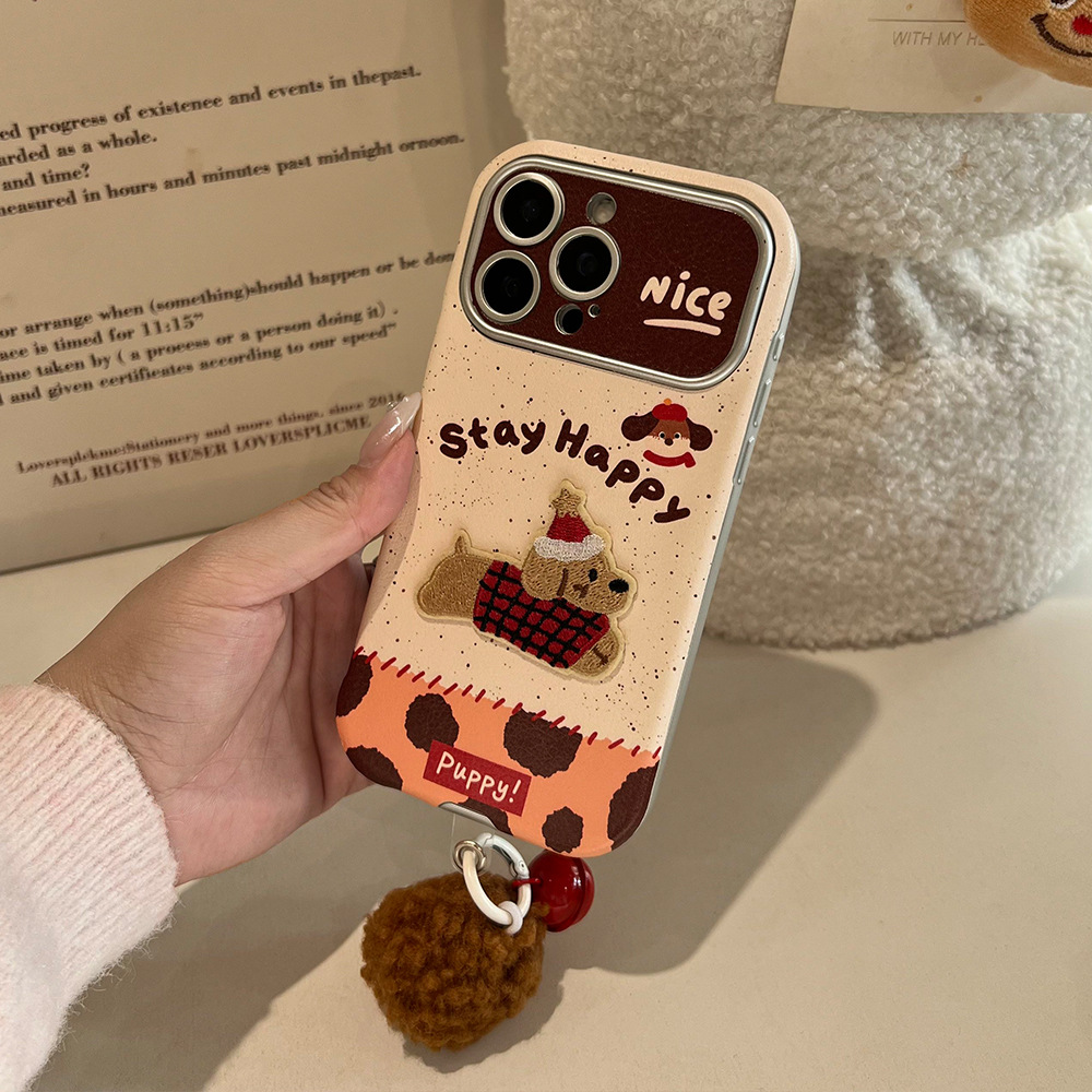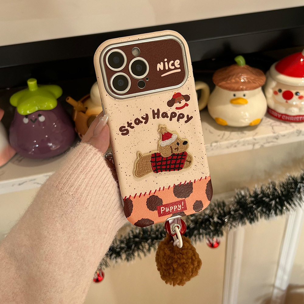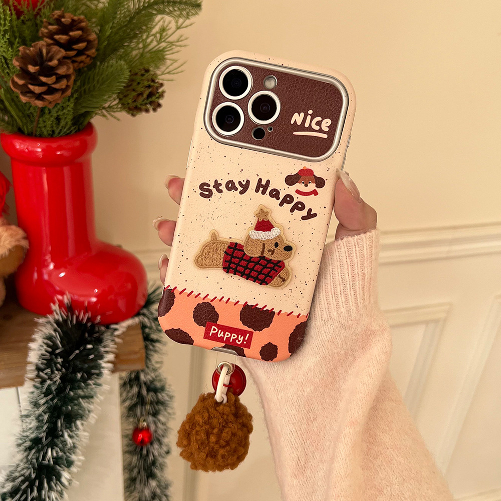 Drop-proof Phone Case With Leather-texture Embroidery Of A Dog