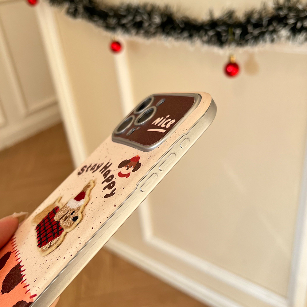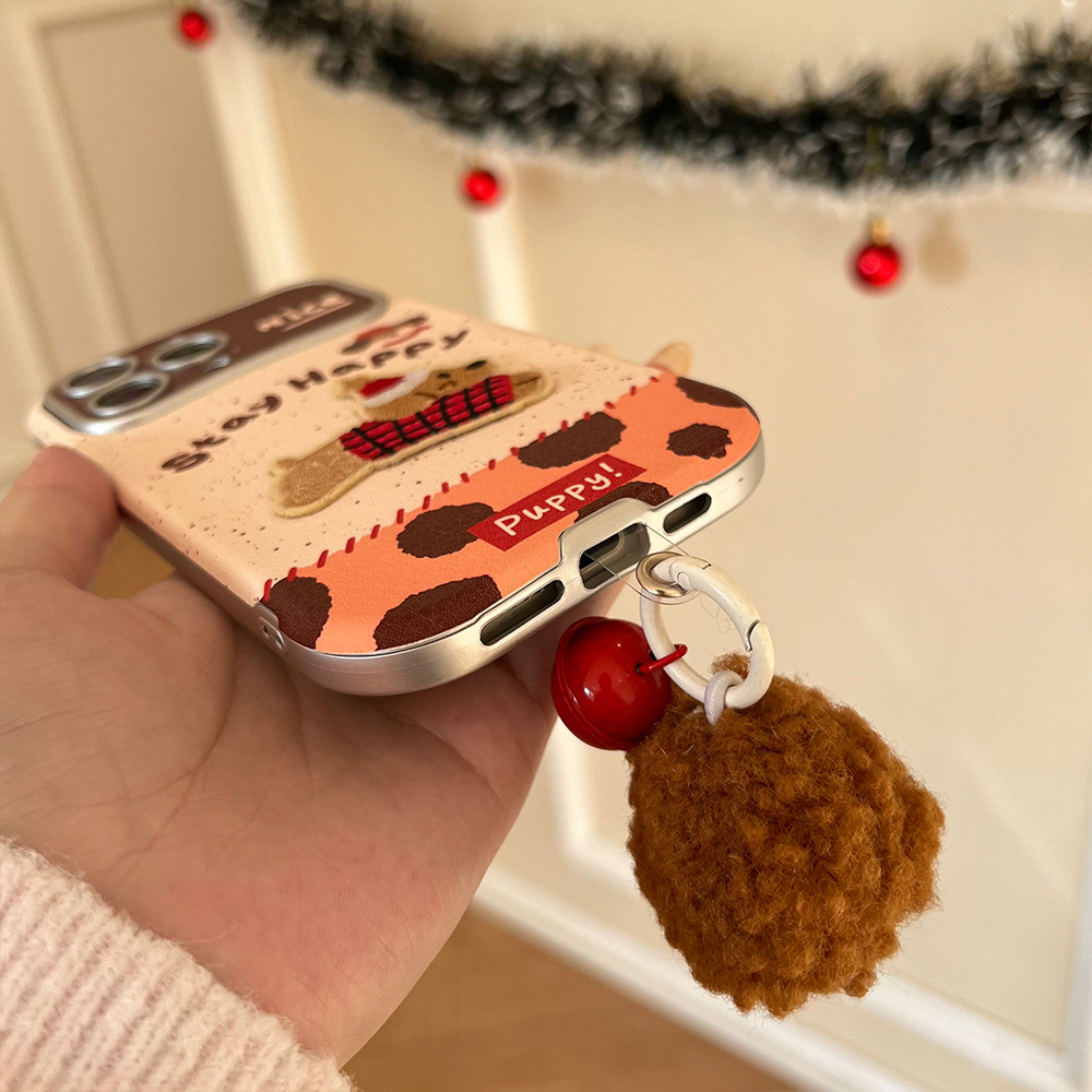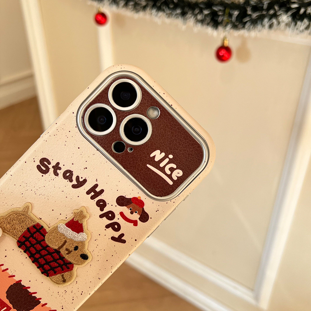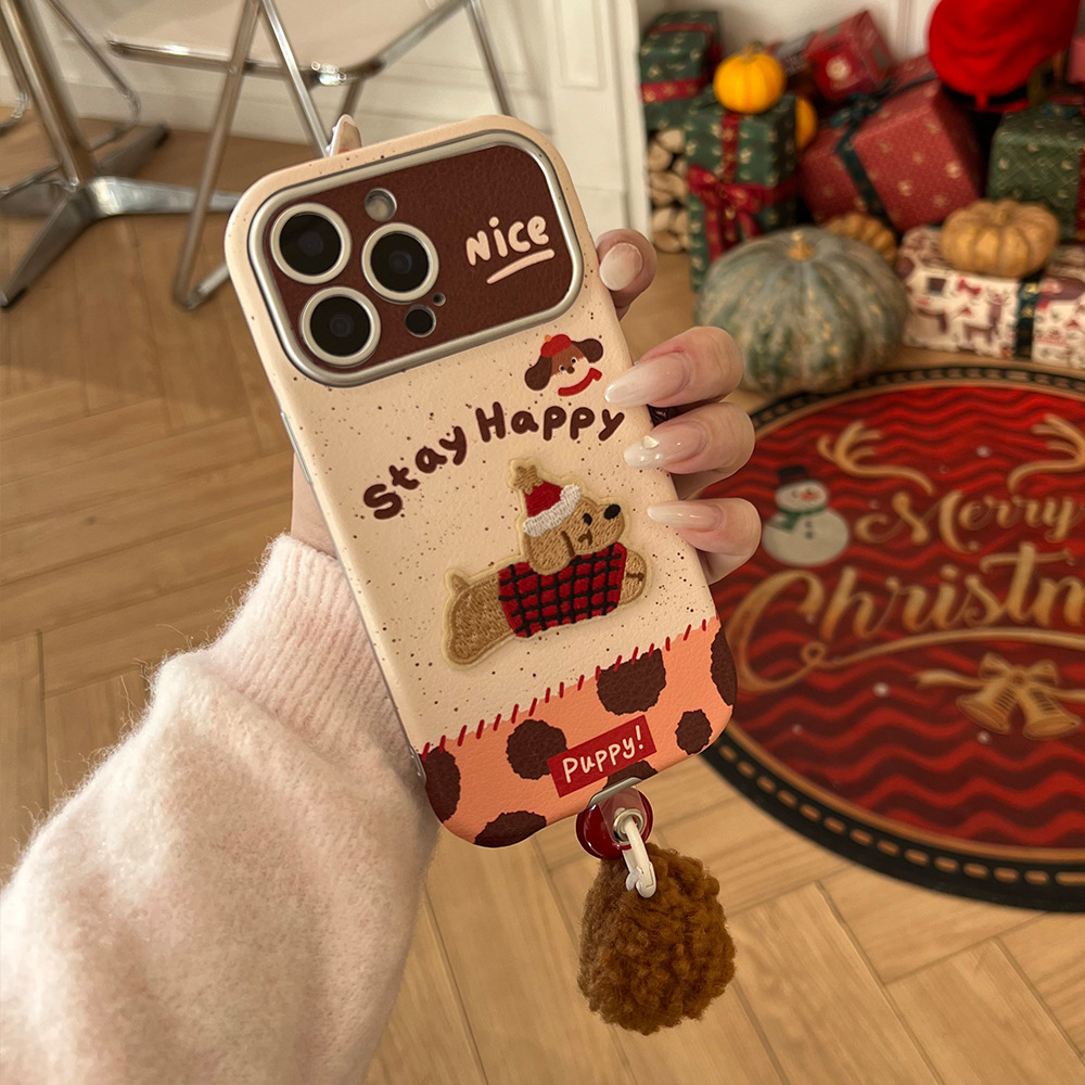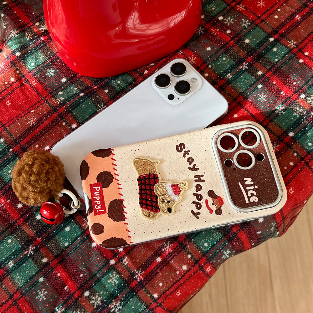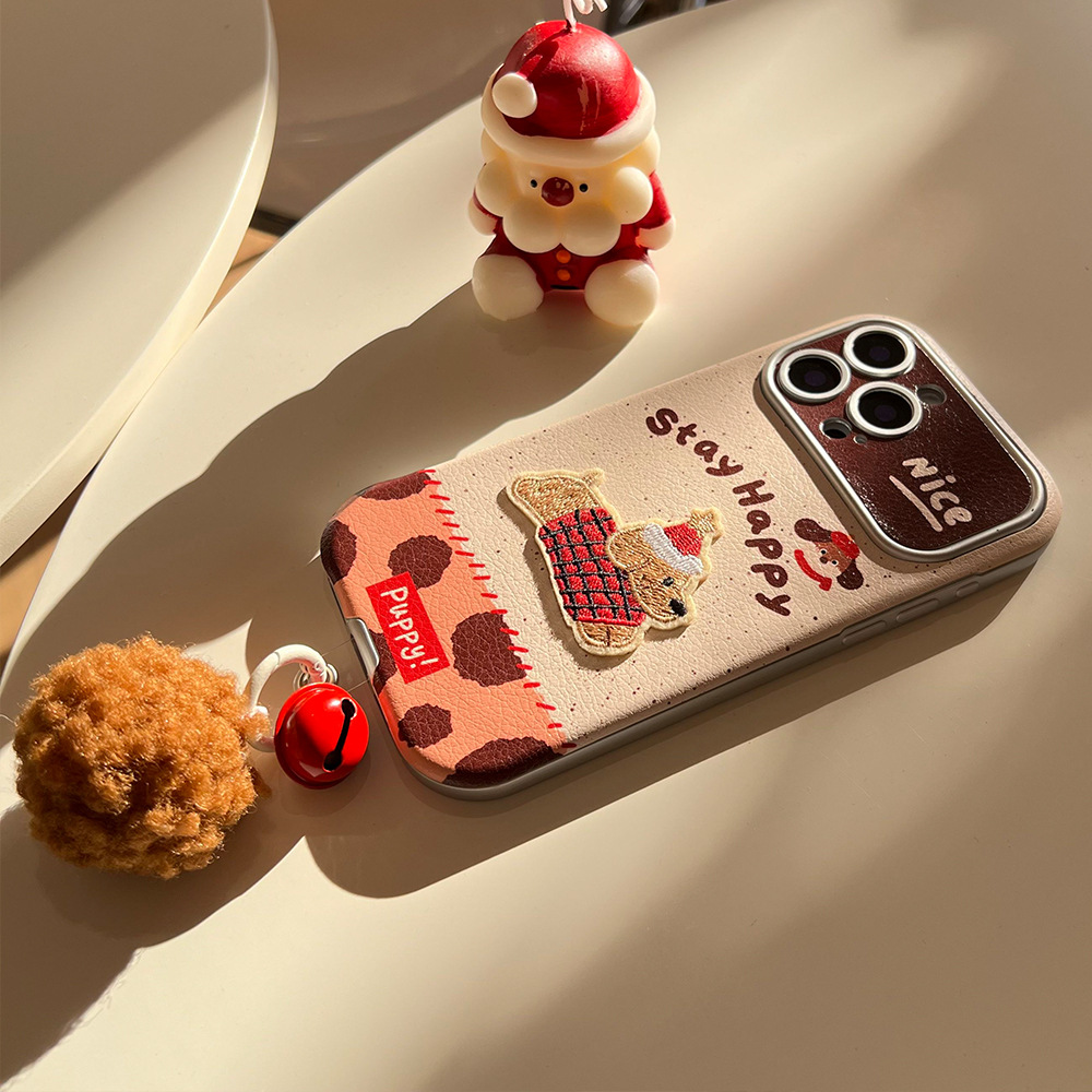 Drop-proof Phone Case With Leather-texture Embroidery Of A Dog