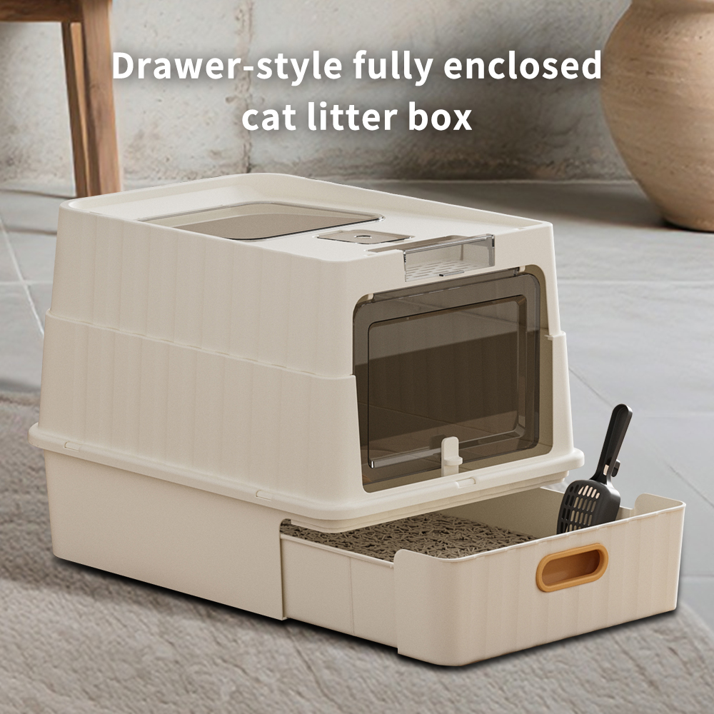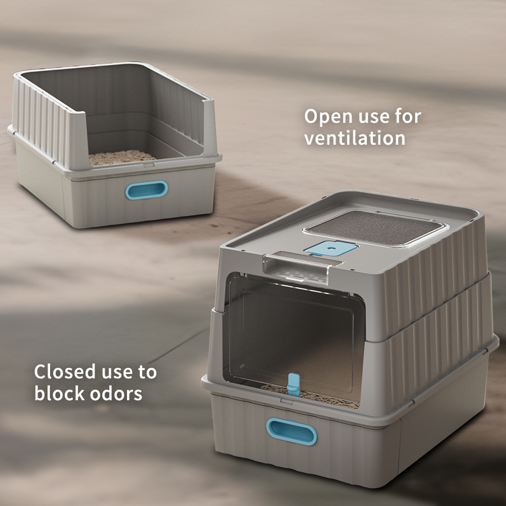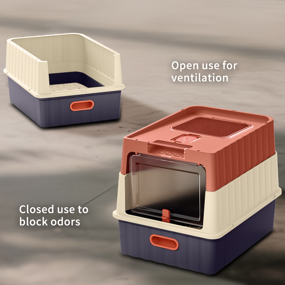 Dual Opening Fully Enclosed Cat Litter Box, Top Entry Anti-Tracking Design, Oversized Space Cat Potty With Cleaning Scoop