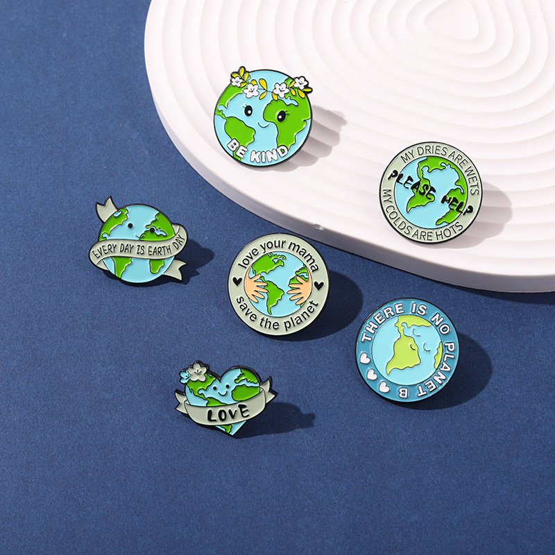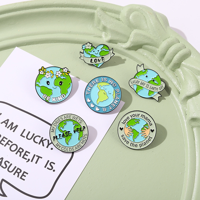 Earth Protection Text Badge Heart-Shaped Plant Pin Brooch