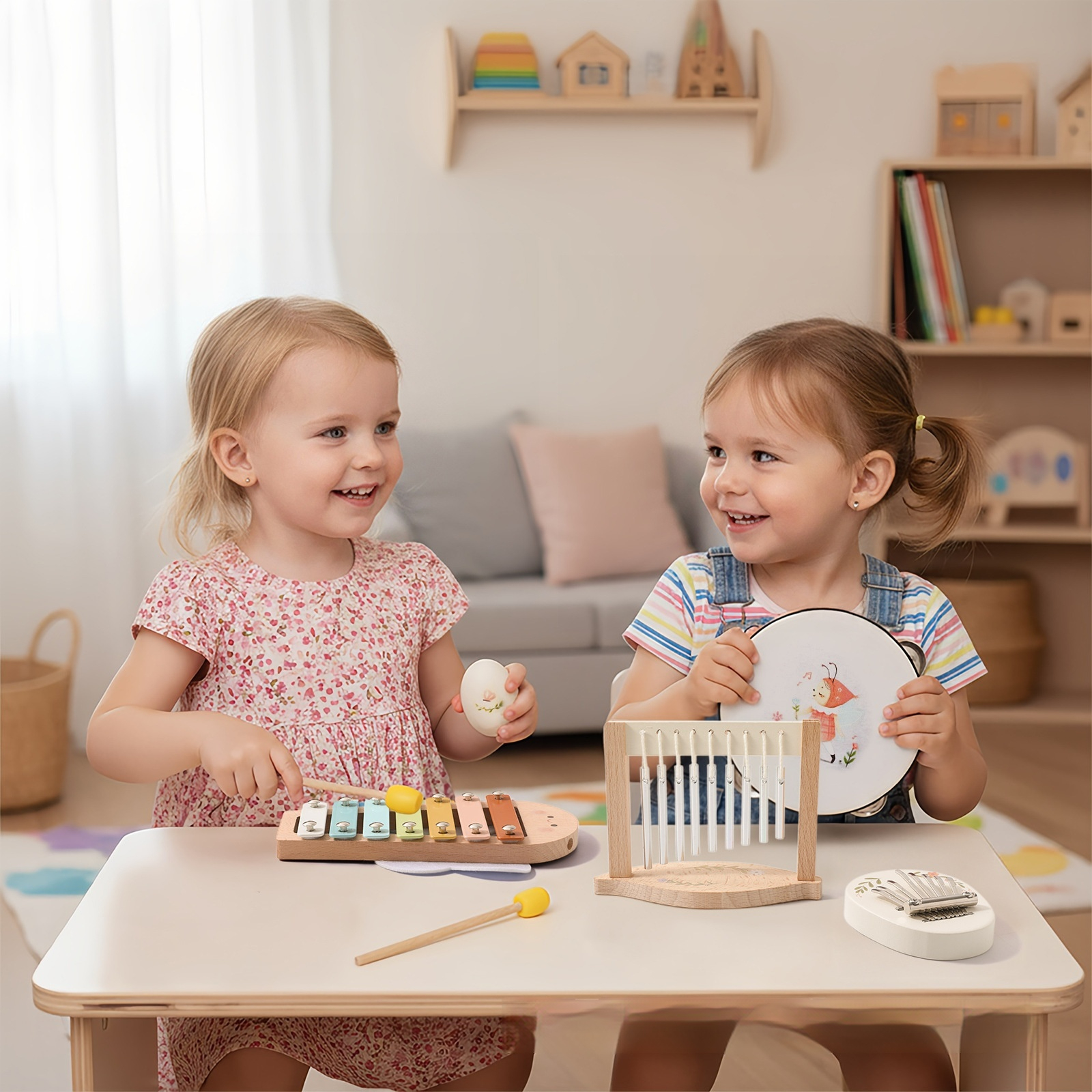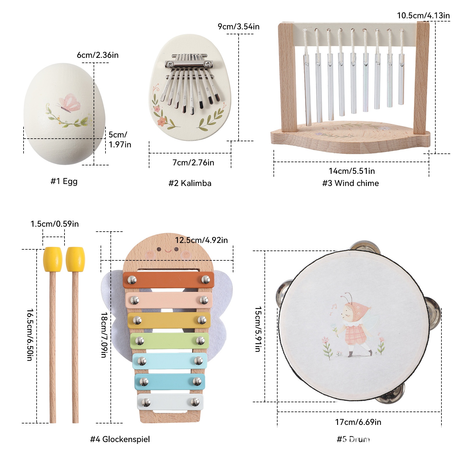 Colors: Garden Music Set, Garden Music Instruments—Egg Maracas, Garden Music Instruments—Thumb Piano, Garden Music Instruments—Wind Chimes, Garden Music Instruments—Glockenspiel, Garden Music Instruments—Drum