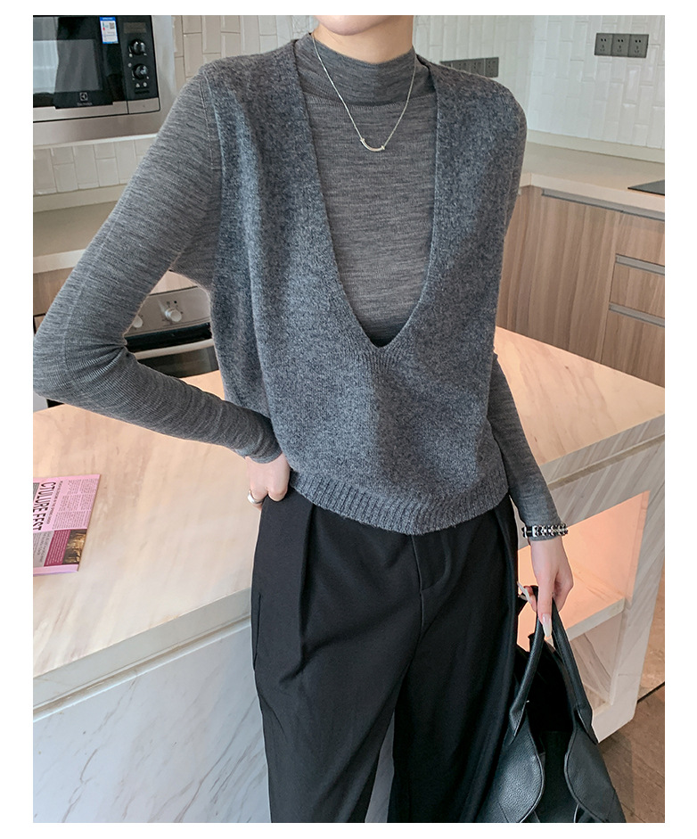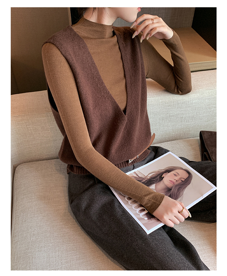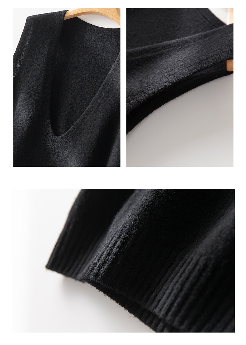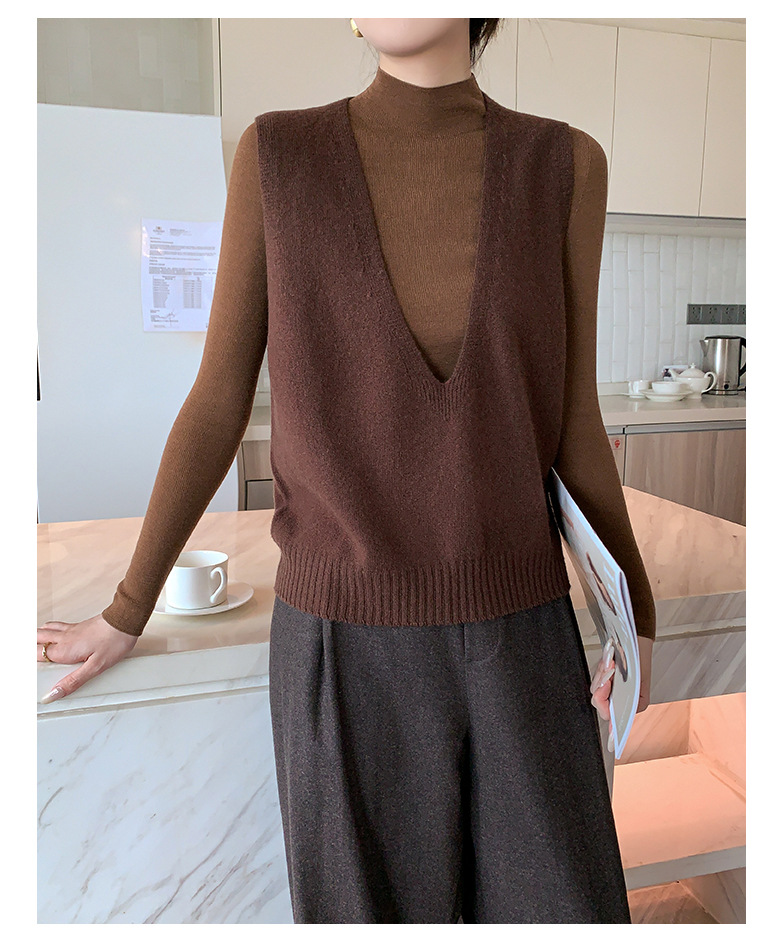 Elegant Deep V-neck Pure Wool Versatile Layered Knit Vest