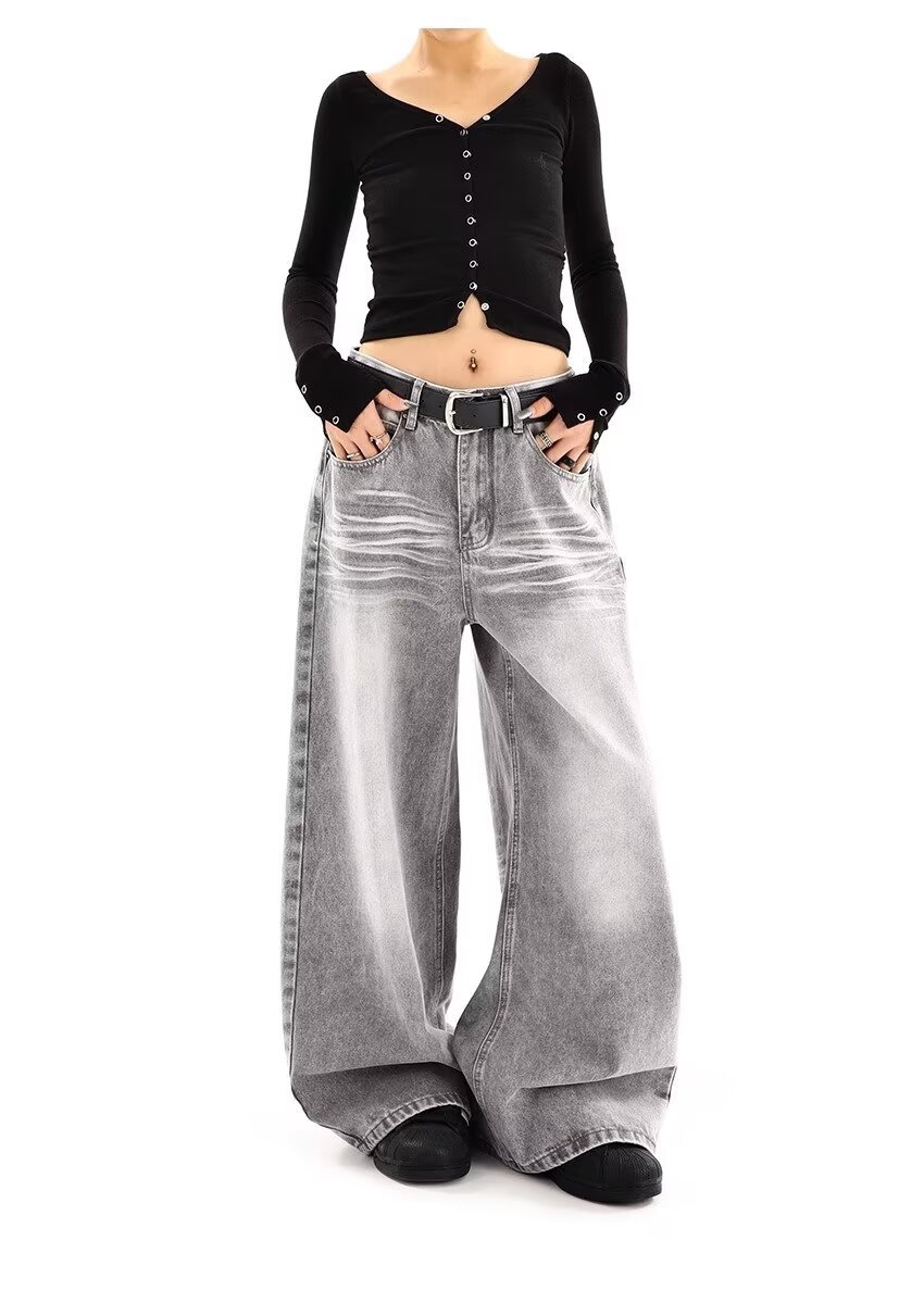 Embroidered High Waist Wide Leg Denim Jeans For Women Vintage Straight Leg Pants
