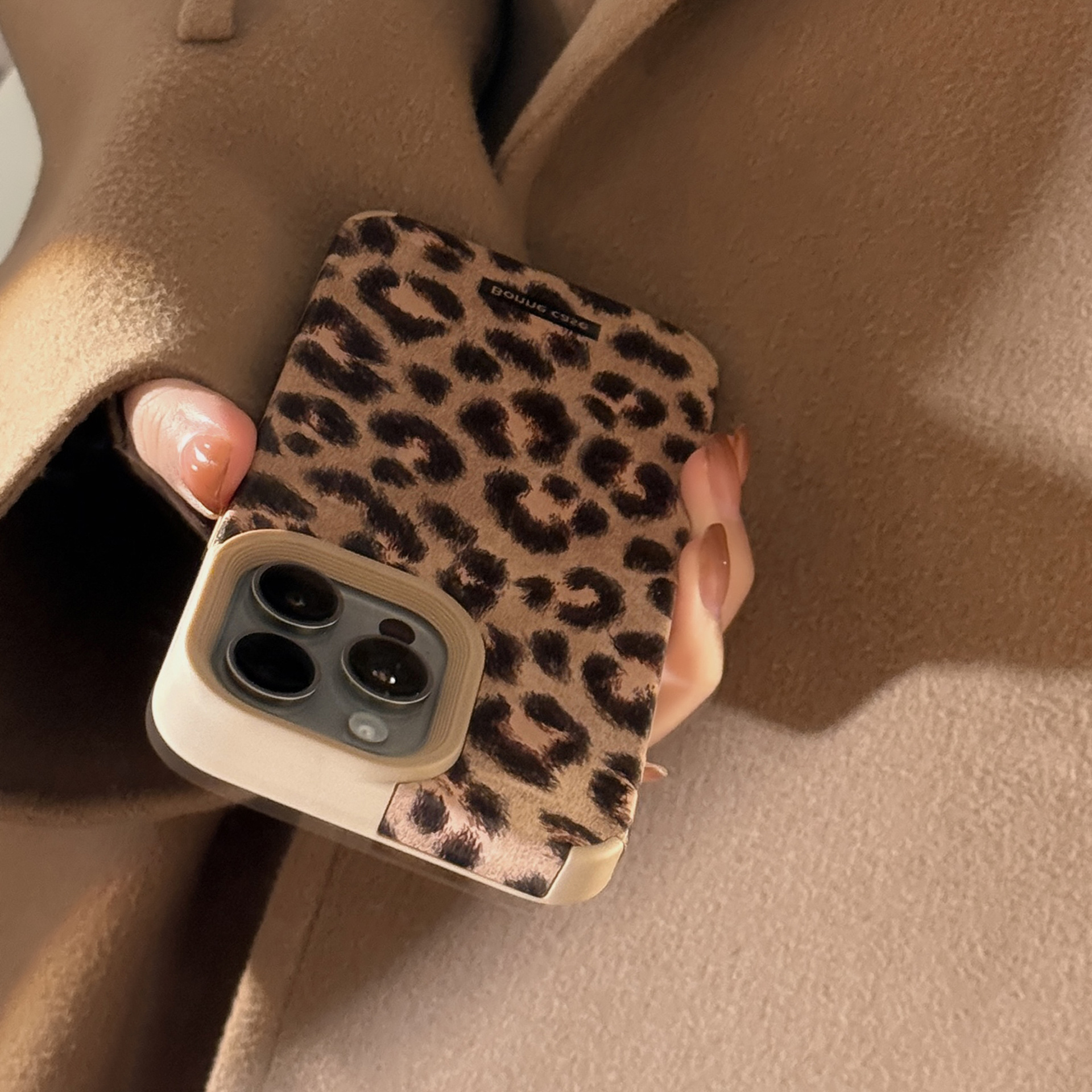 European And American Leopard-Print Plush Lanyard Phone Case Suede Vintage Style