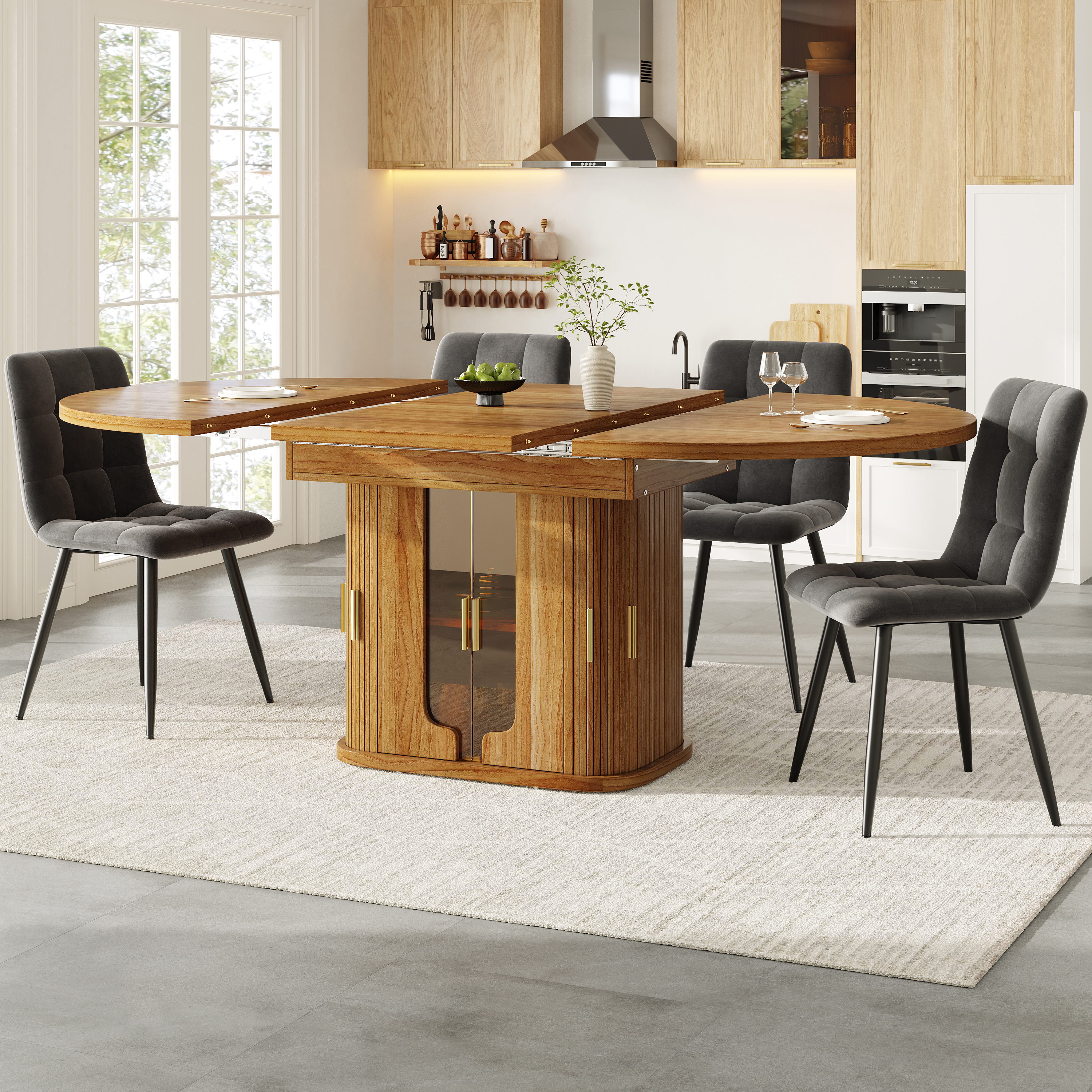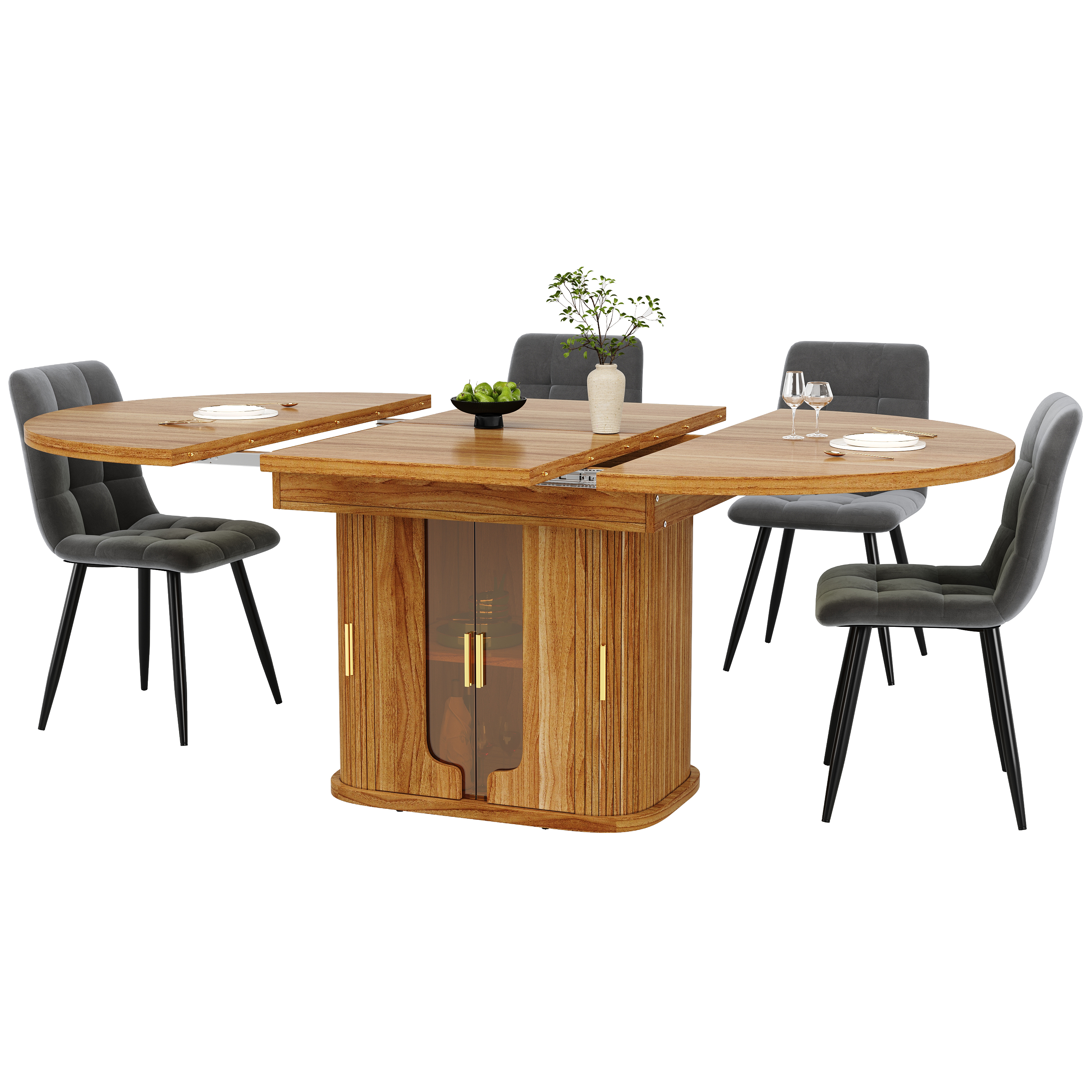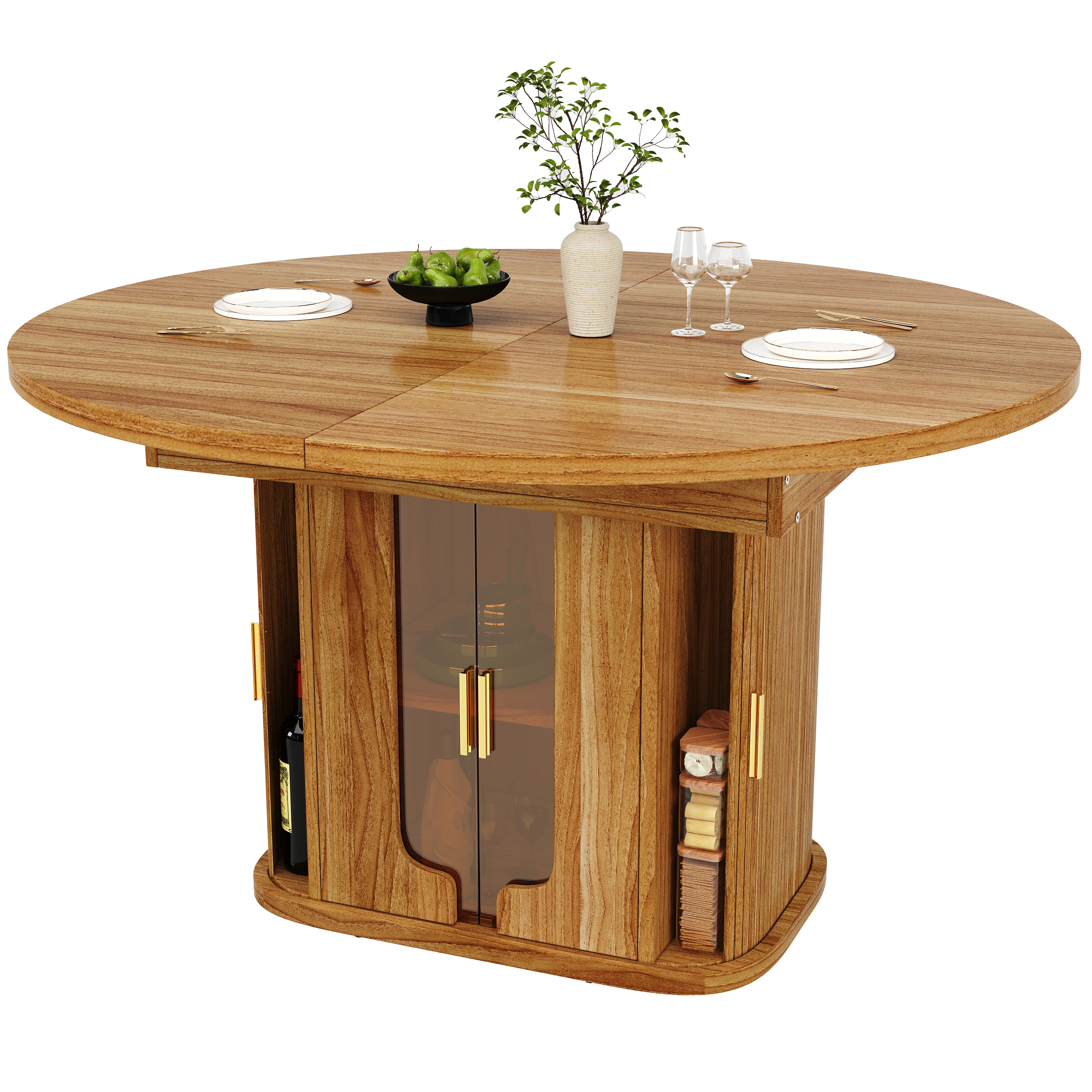 Product Name:Extendable dining table, dining room table, kitchen table, round dining table, extends to oval, 118-158 cm, seats up to 6 people, dining table with glass doors, Walnut