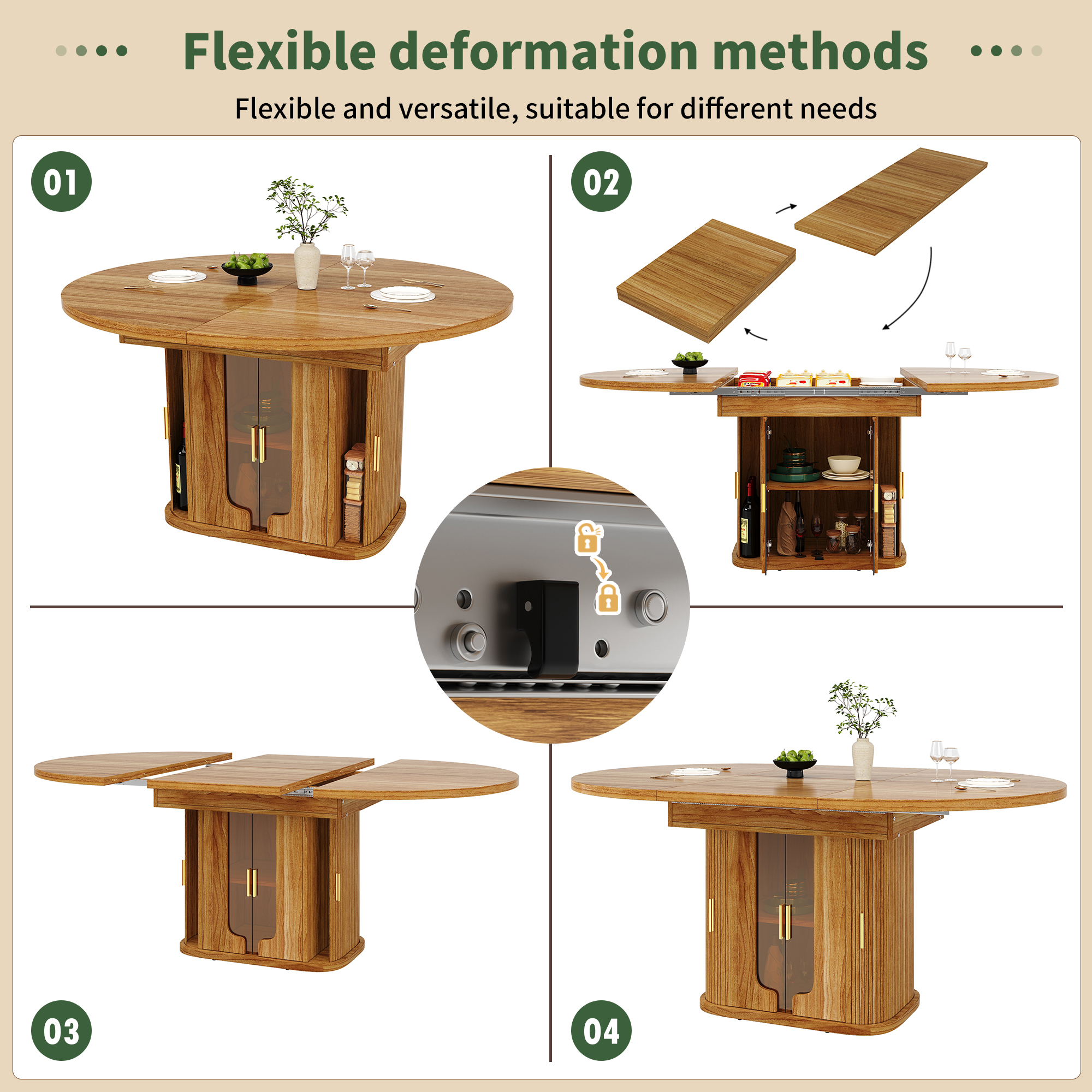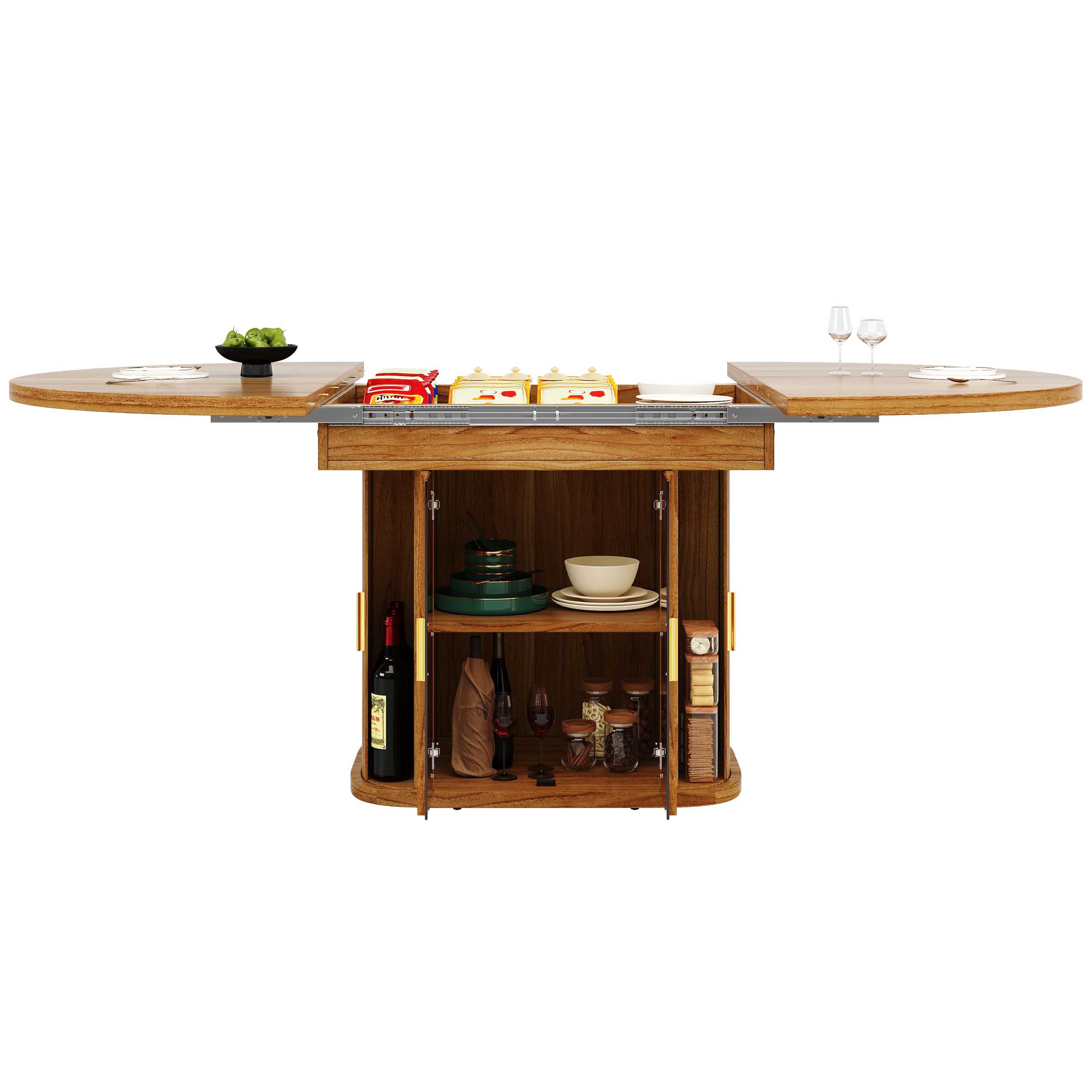 This extendable table perfectly combines classic aesthetics with robust functionality. A thickened MDF tabletop, gleaming metal handles, and elegant amber glass doors lend it a luxurious feel. The exquisitely designed legs further enhance its premium look. Its extendable function allows it to flexibly adapt to different spatial scenarios—whether as a compact side table, an extended coffee table, or an expandable dining table. This makes it an ideal solution for dynamic home décor concepts that emphasize versatility and space saving.