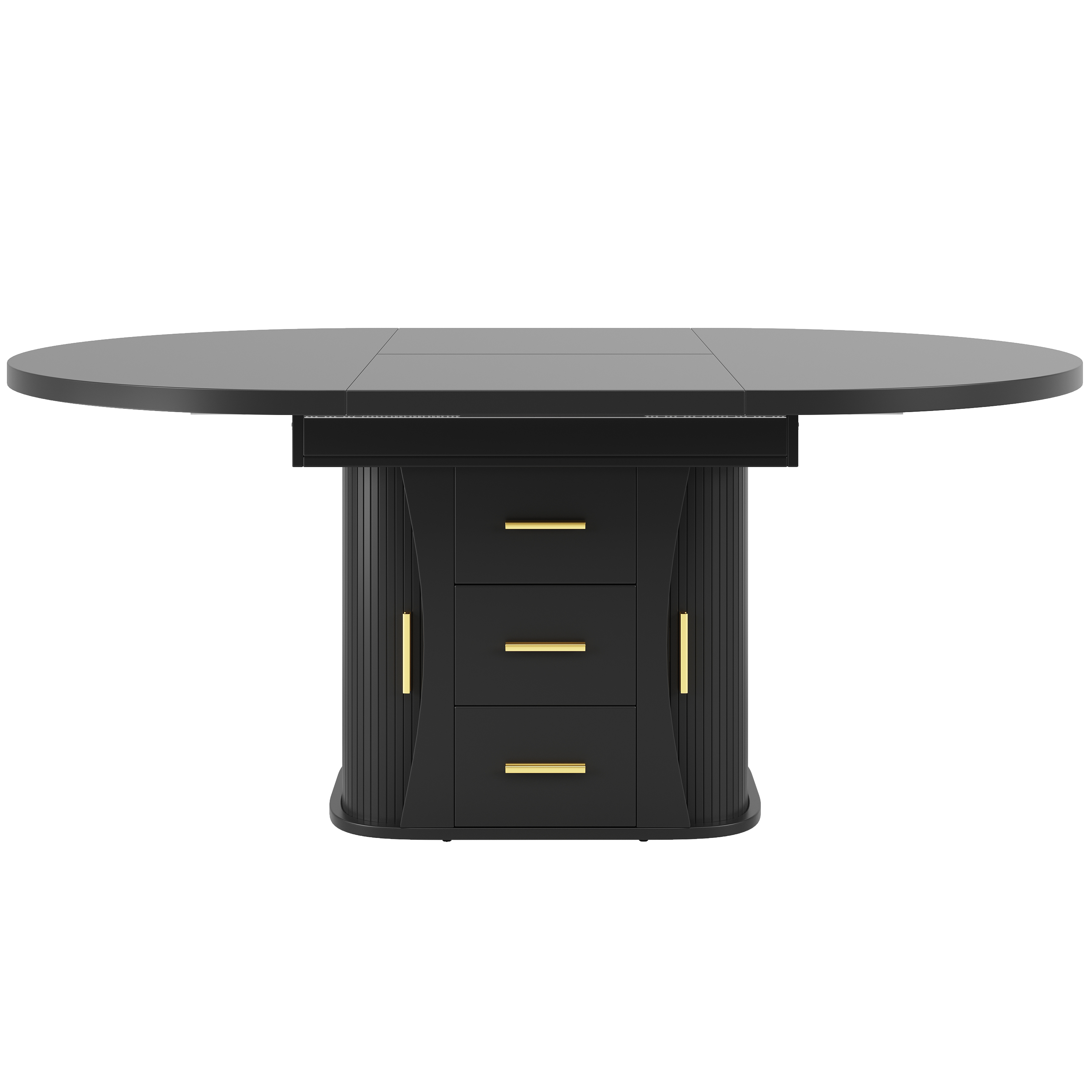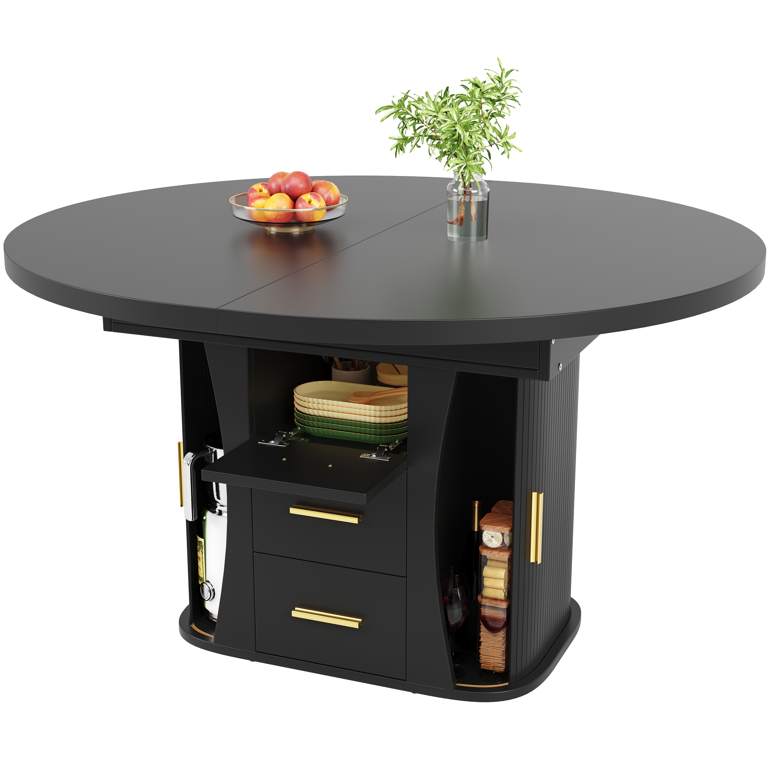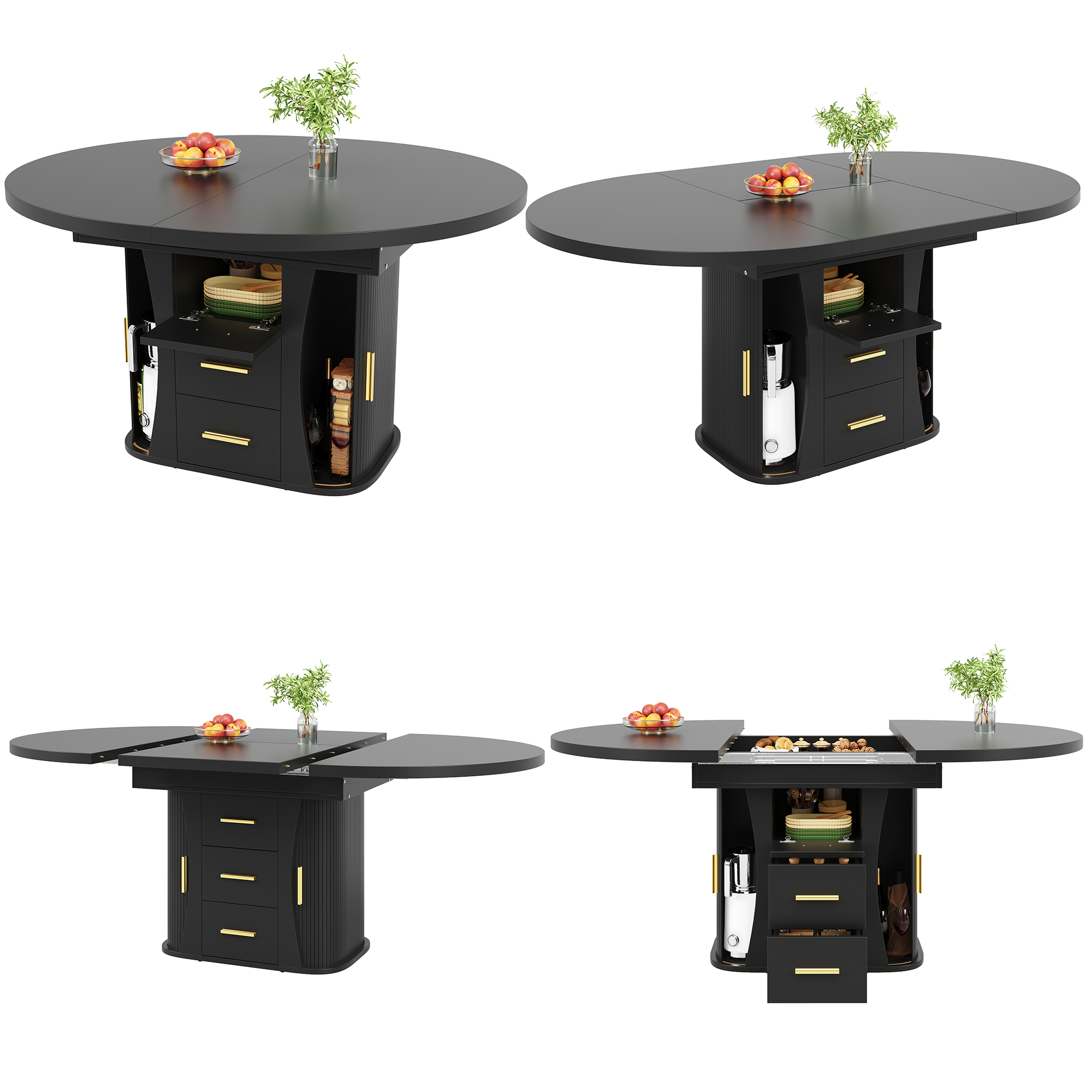 Extendable Dining Table, Dining Room Table, Kitchen Table, Round Dining Table, Extends To Oval, 118-158 Cm, Seats Up To 6 People, Three-tier Storage, Black