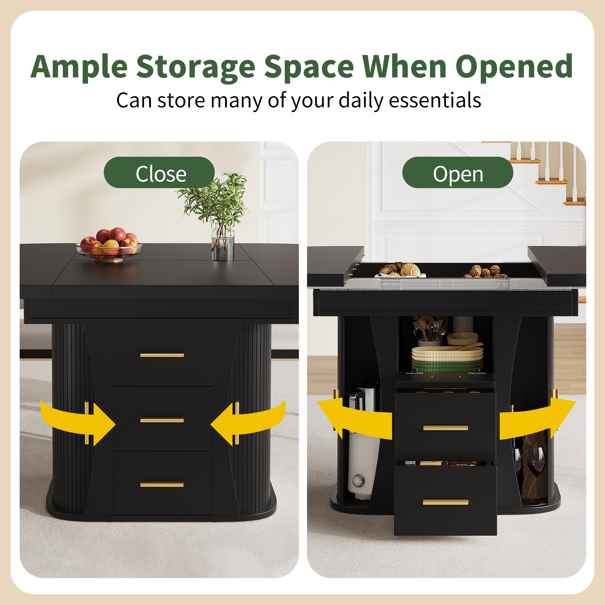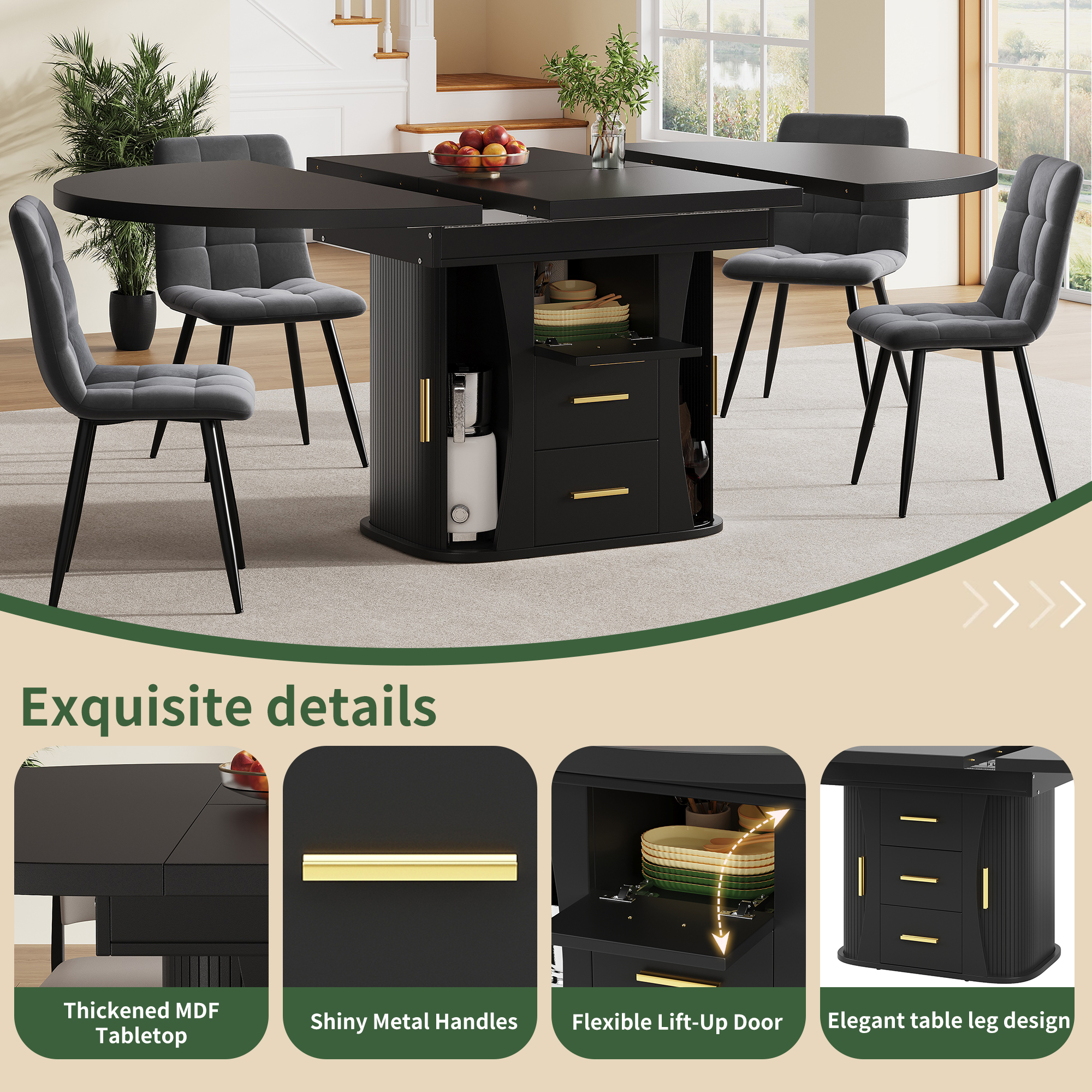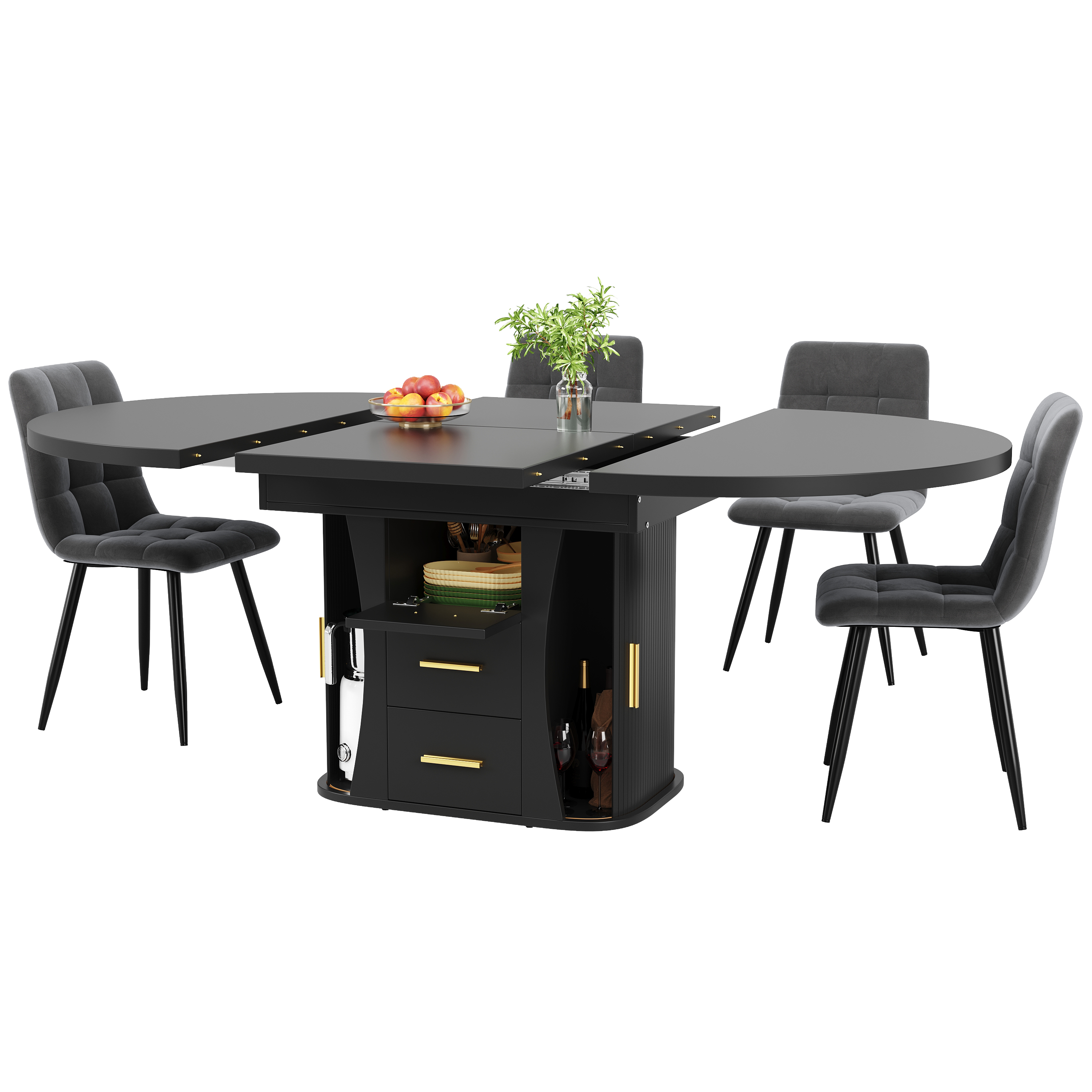 Extendable Dining Table, Dining Room Table, Kitchen Table, Round Dining Table, Extends To Oval, 118-158 Cm, Seats Up To 6 People, Three-tier Storage, Black