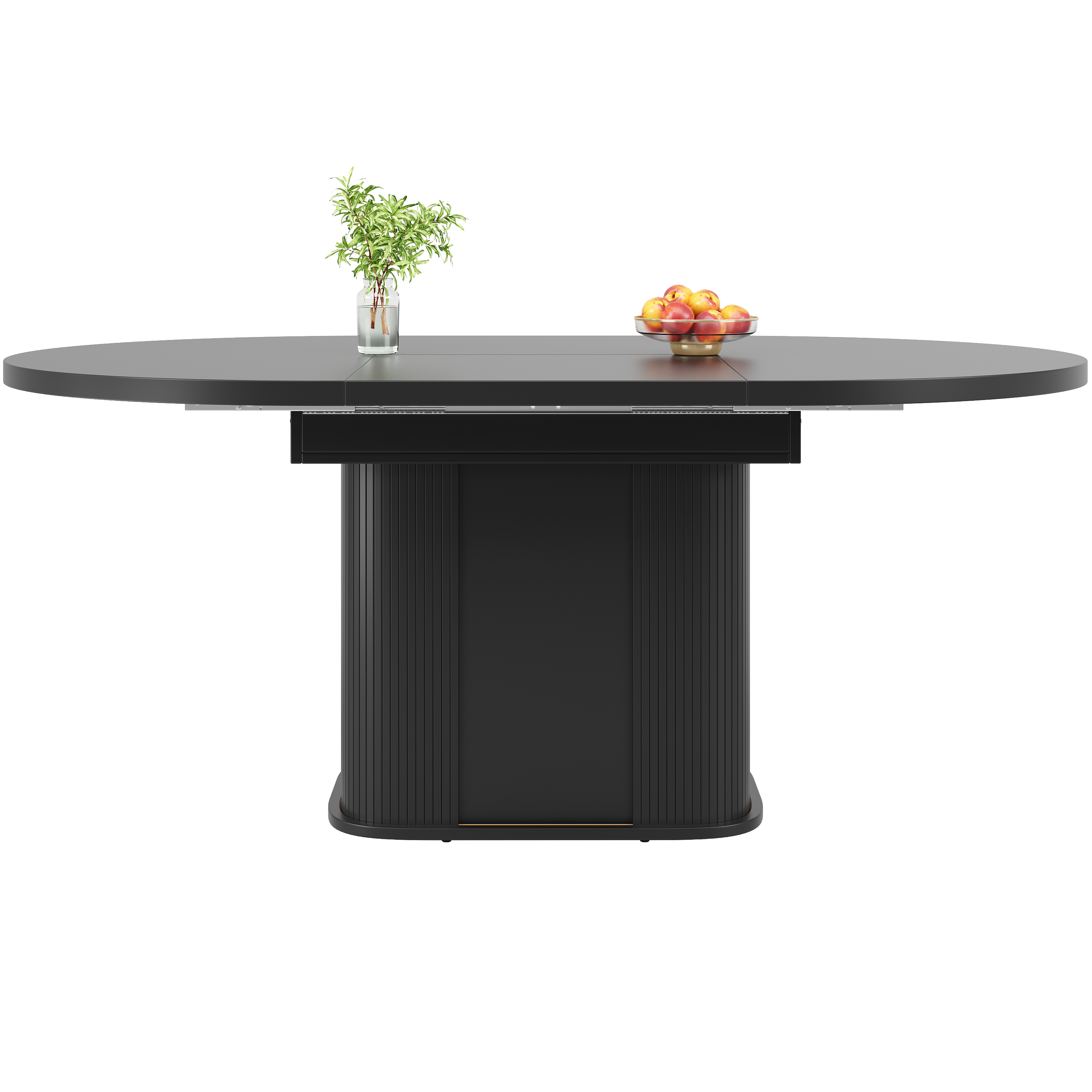 Product Name:Extendable dining table, dining room table, kitchen table, round dining table, extends to oval, 118-158 cm, seats up to 6 people, three-tier storage, black