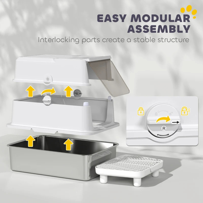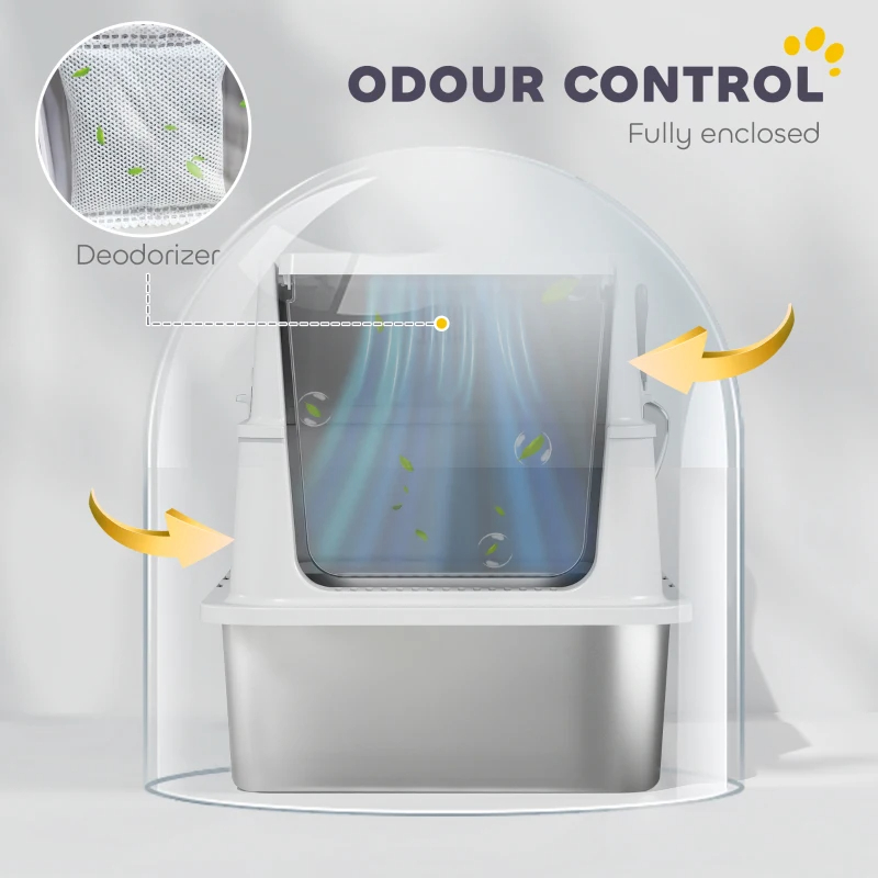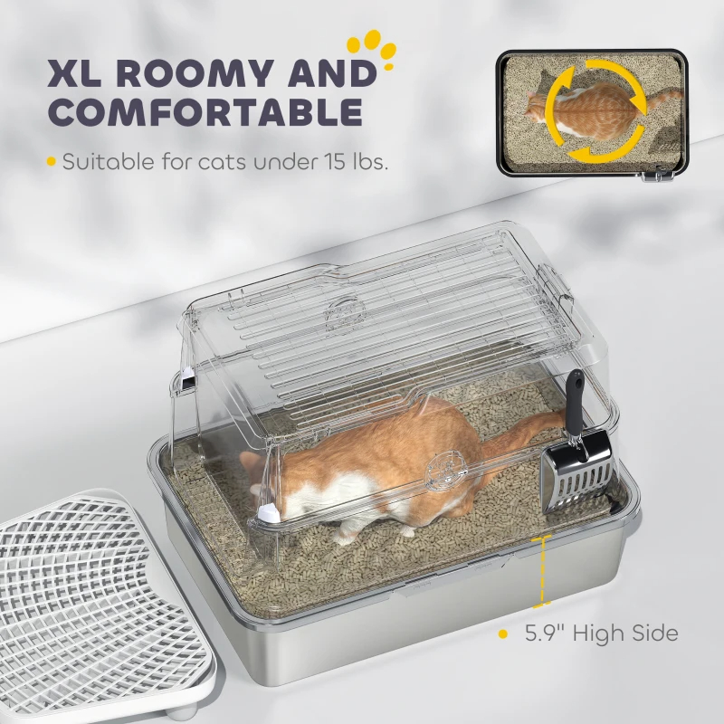 Product Details Tired of constant litter box mess and odors? The PawHut stainless steel litter box offers a solution with its scratch-resistant and odor-resistant design, ensuring easy maintenance...