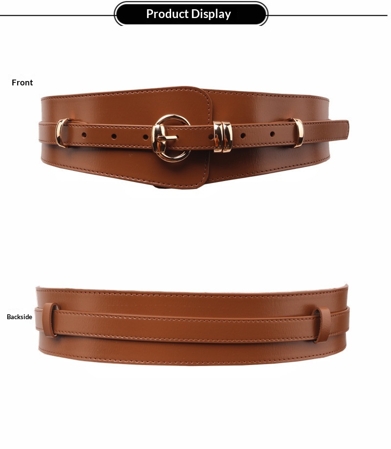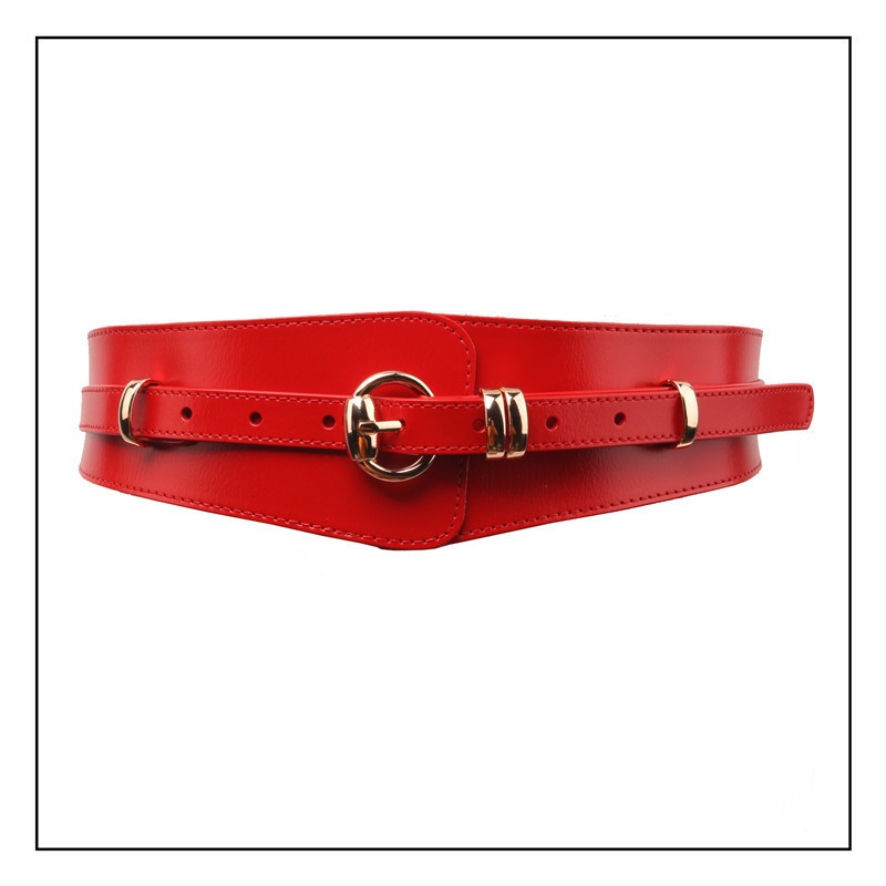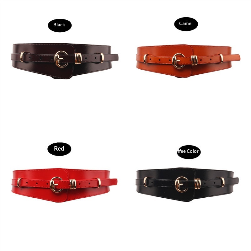 Product information:Leather characteristics: Second-layer cowhideWidth: Wide style (>4 cm)Colors: Red, black, coffee, camel, caramelMaterial: Genuine leatherBelt buckle material: AlloyClosure type:...